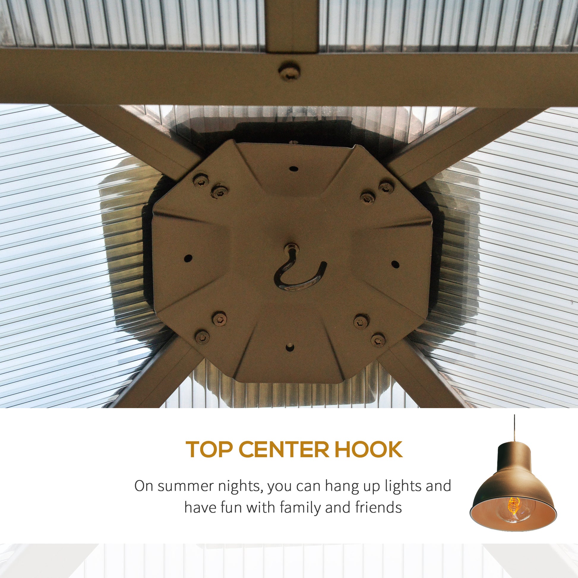 Outsunny 3 x 3(m) Polycarbonate Hardtop Gazebo Canopy with Double-Tier Roof and Aluminium Frame, Garden Pavilion with Mosquito Netting and Curtains