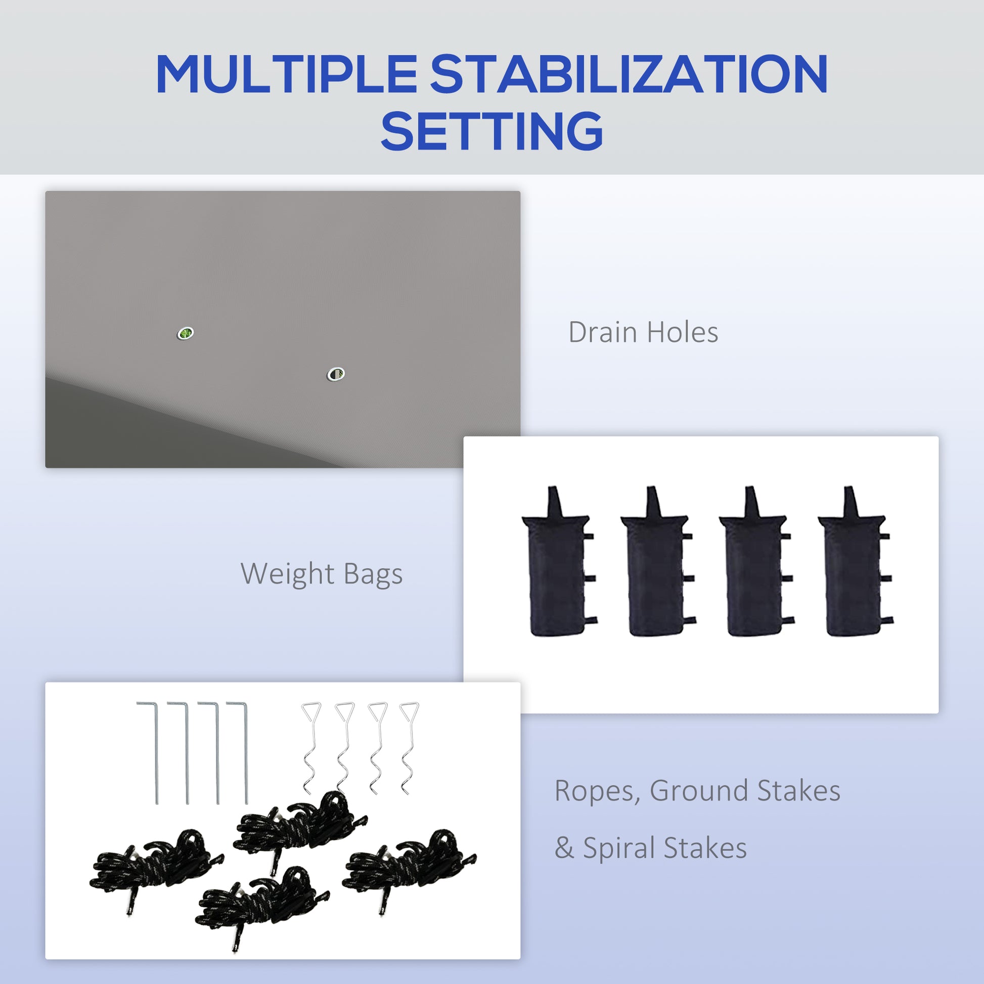 - Comes with weight bags, guy ropes and stakes to mount to ground