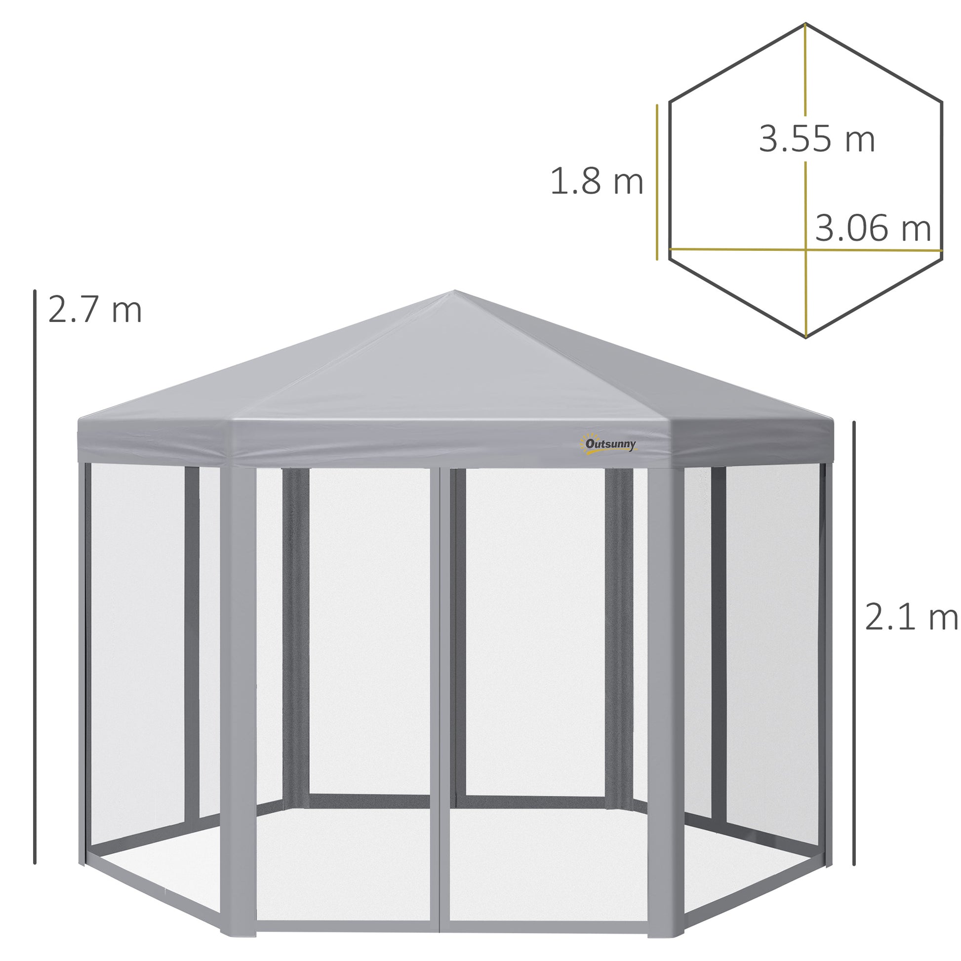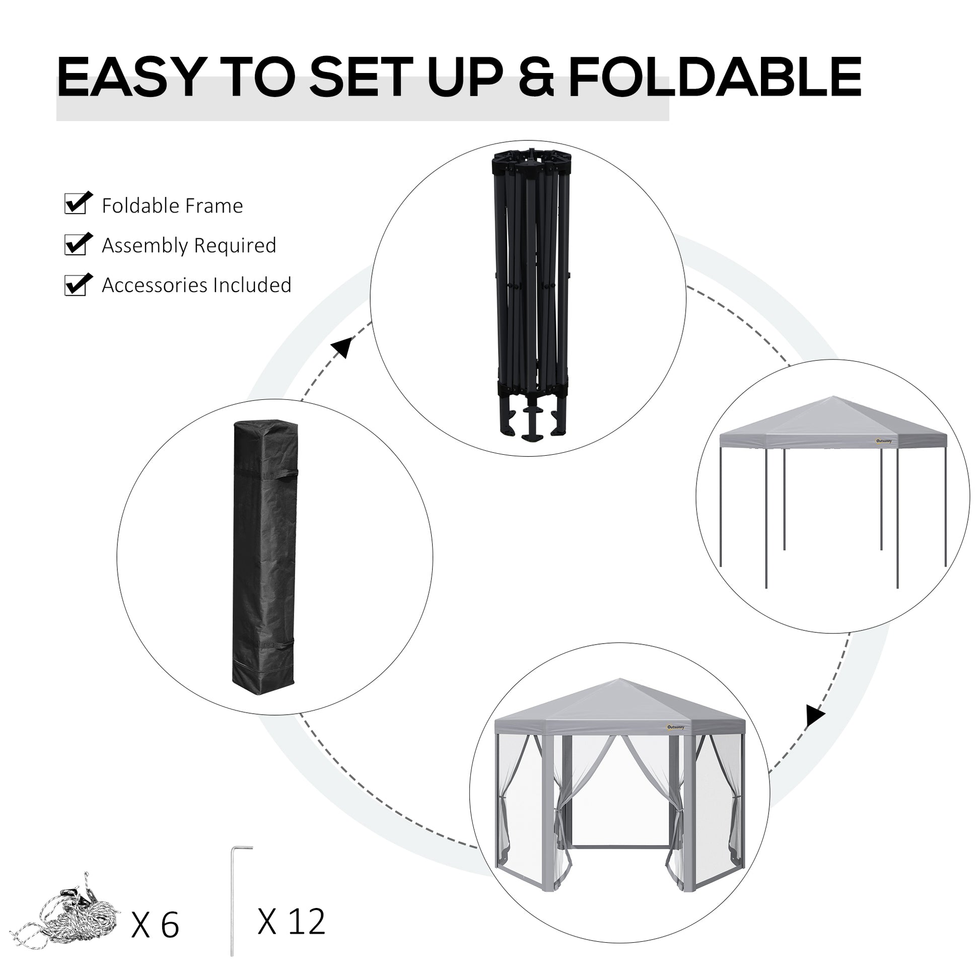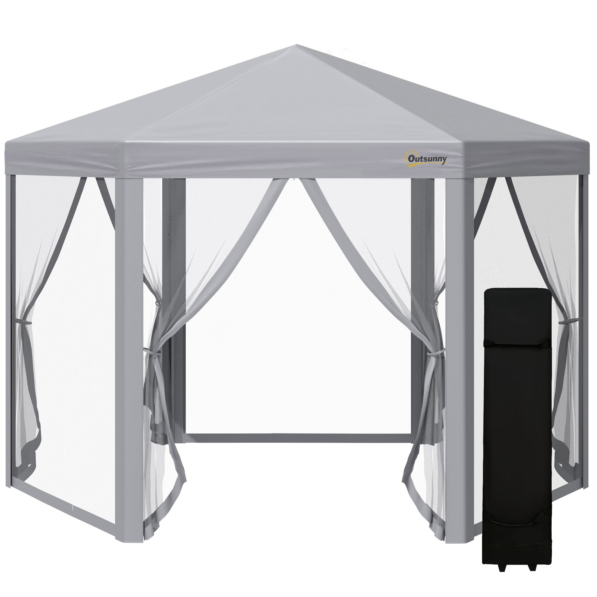 Outsunny 3 x 3(m) Pop Up Gazebo Hexagonal Foldable Canopy Tent Outdoor Event Shelter with Mesh Sidewall, Adjustable Height and Roller Bag, Grey
