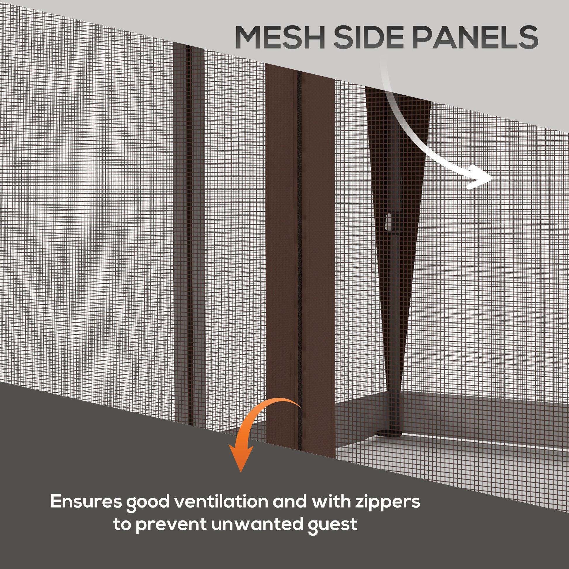 - Full-sided mesh curtains with zippers provide comfortable and private space