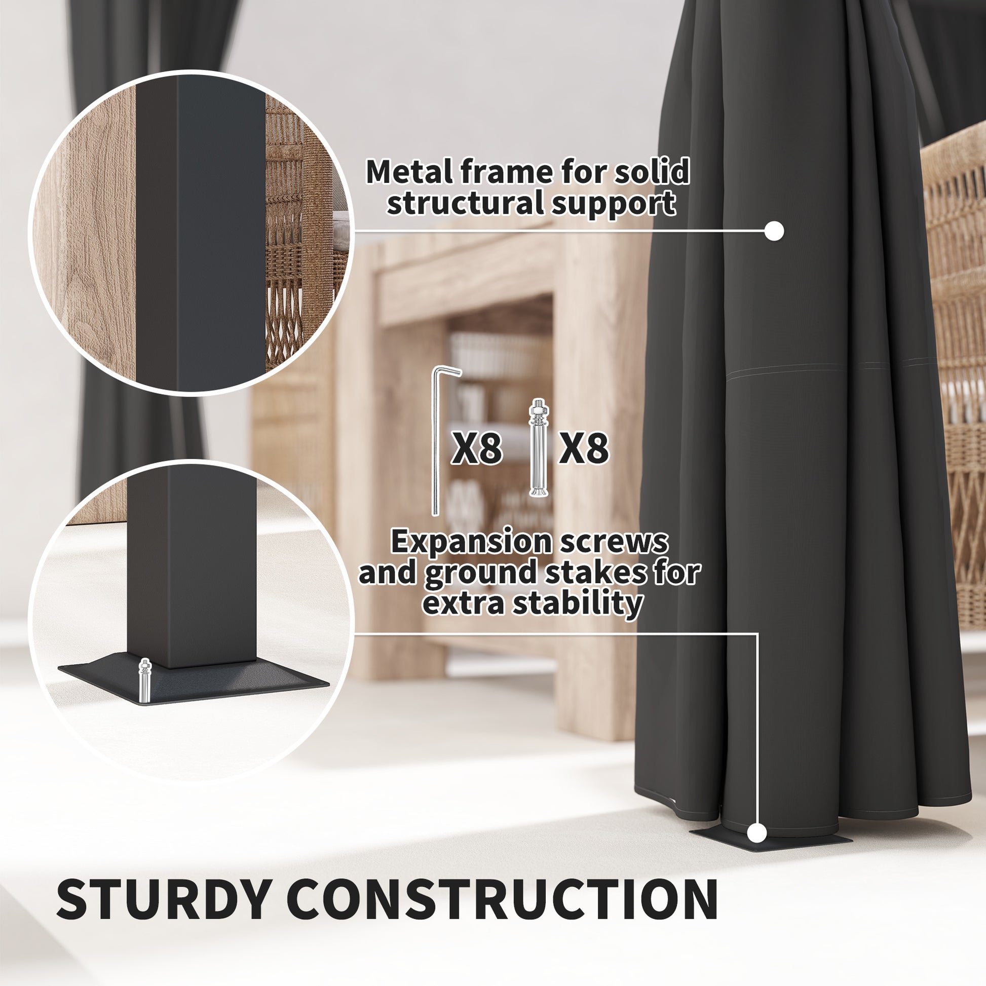 Outsunny 3 x 3(m) Retractable Pergola, Garden Gazebo Shelter with Curtains, for Grill, Patio, Deck, Charcoal Grey