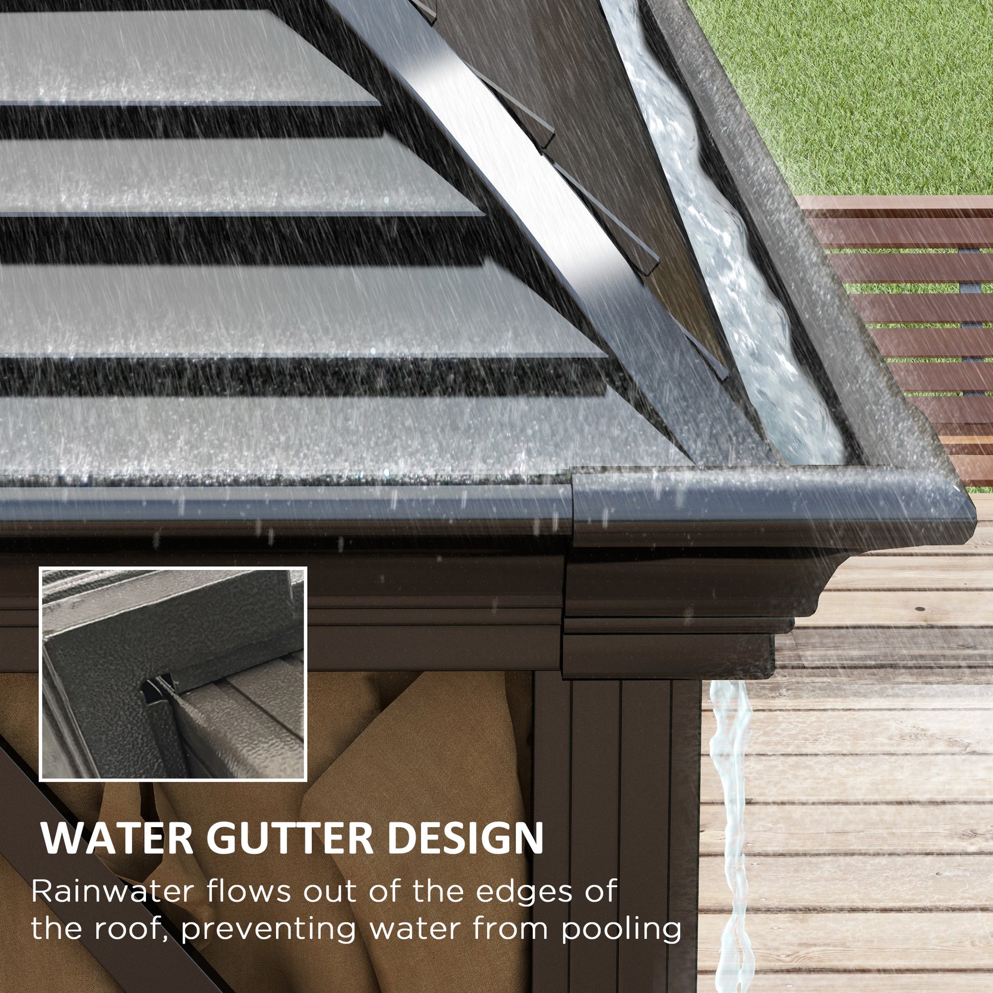 Outsunny 3 x 4m Hardtop Gazebo Canopy with Metal Roof, Aluminium Gazebo Permanent Pavilion with Netting and Curtains, Brown