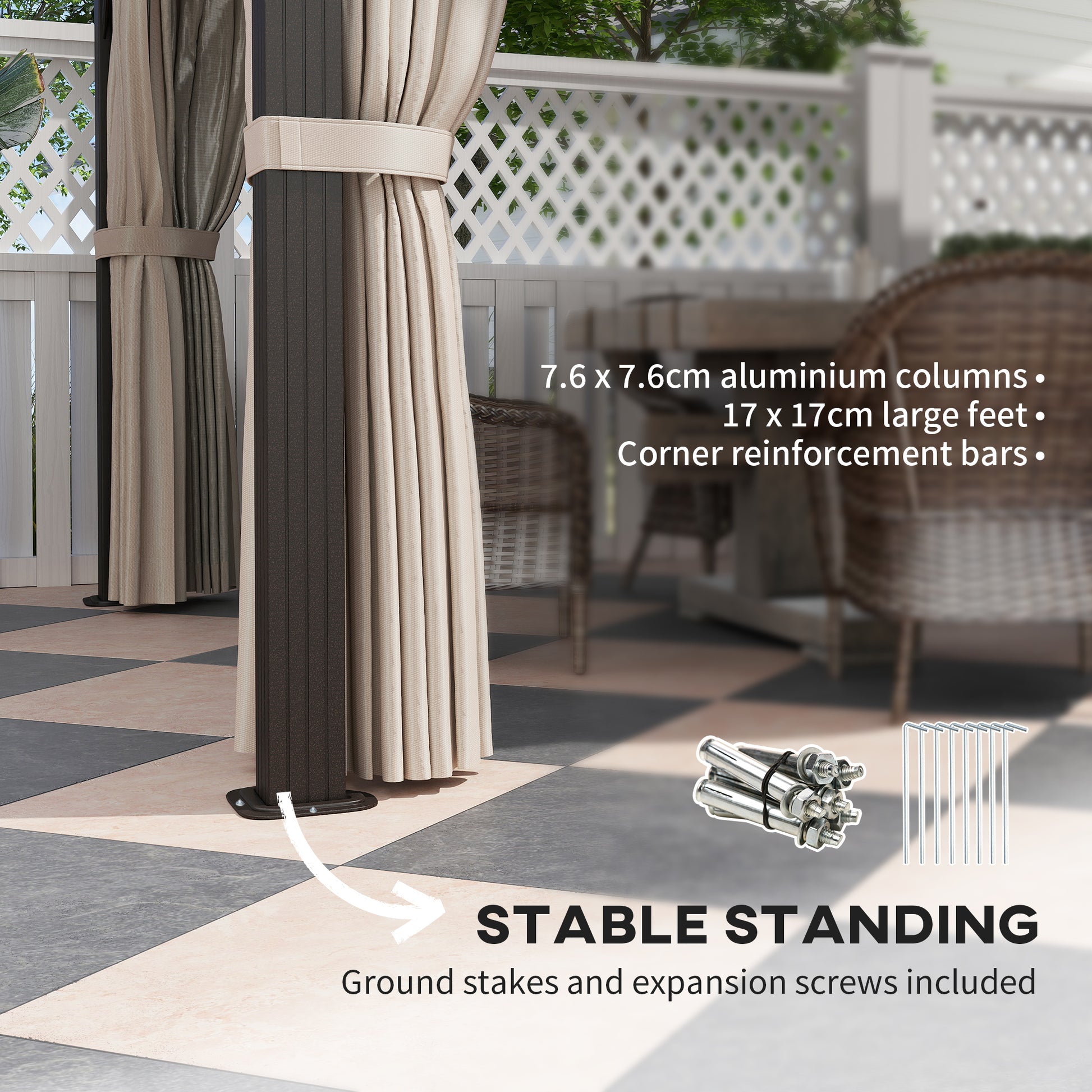 3 x 4m Hardtop Gazebo Canopy with UPF30+ Double Polycarbonate Roof, Aluminium Frame Garden Gazebo Permanent Pavilion, Beige
