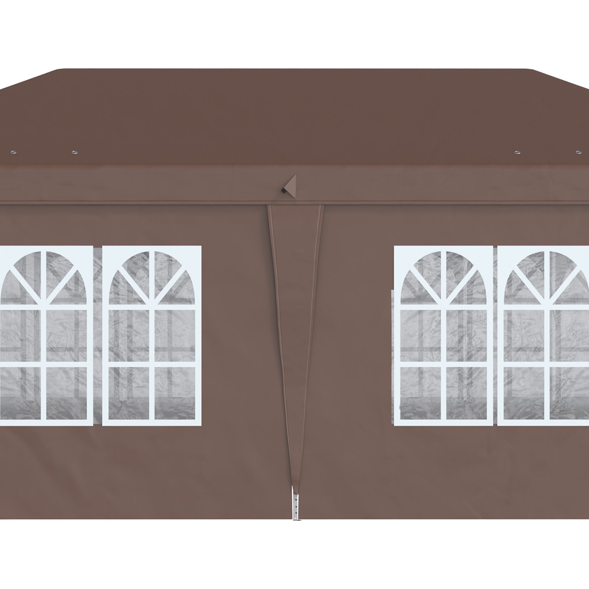 Outsunny 3 x 6 m Pop Up Gazebo with Sides and Windows, Height Adjustable Party Tent with Storage Bag for Garden, Camping, Event, Brown
