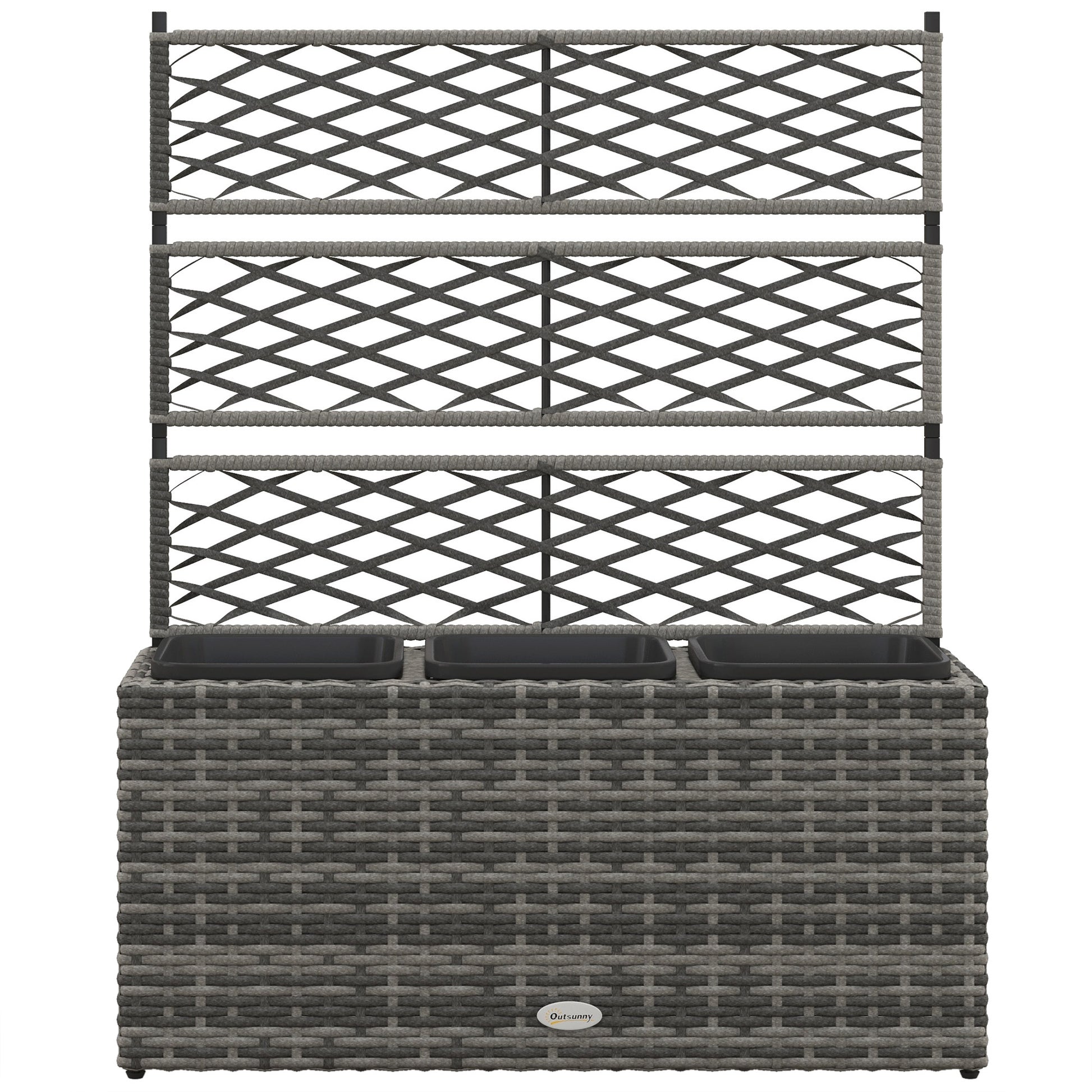 Give plants a beautiful place to grow and flourish. Combining back trellis panels and three planting boxes, this is a duo piece which offers space for both vines and standard plants. A metal frame for a strong core, wrapped in plastic wicker for a stylish rattan look: pairs well with your current outdoor furniture.