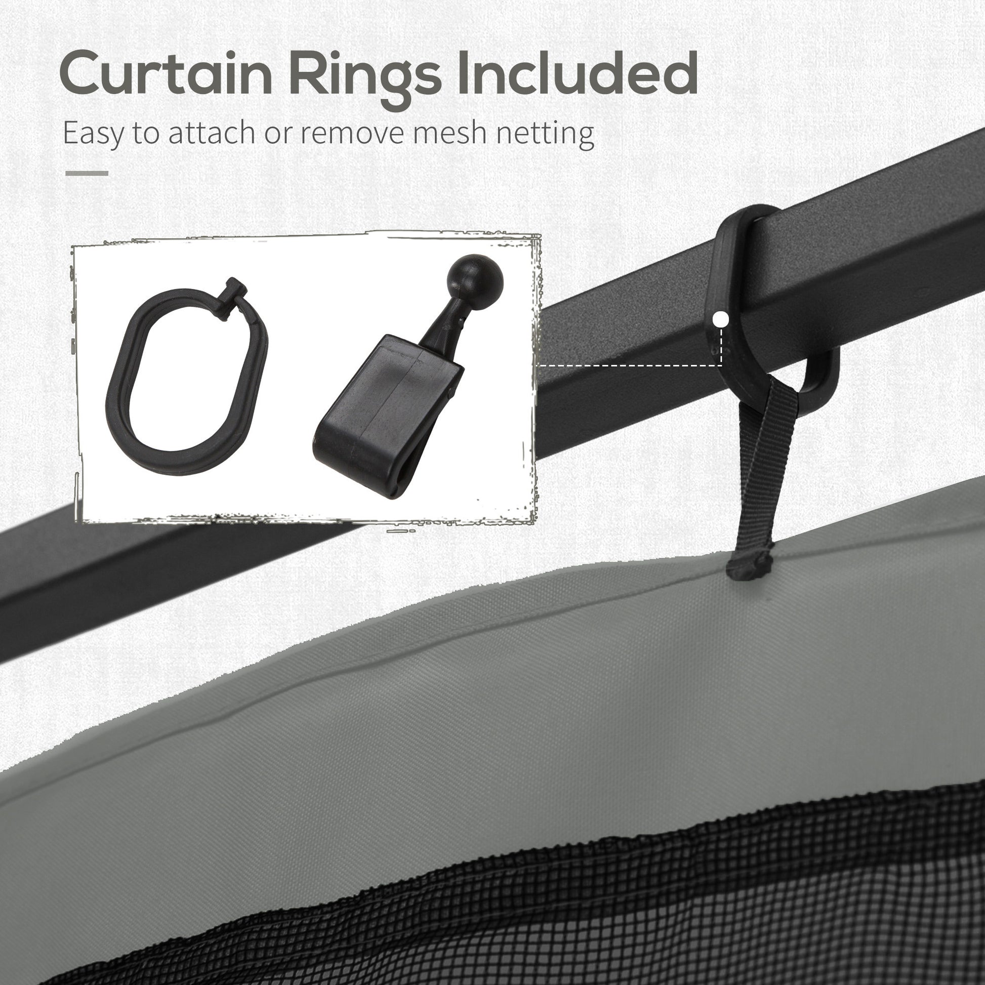 Have a gazebo, but your old mesh netting tore or got damaged? Good news, Outsunny has a universal replacement mesh netting that fits most 10' x 10' models. Made of outdoor-ready polyester fabric, the canopy netting will keep your outdoor space clear of unwanted intruders, leaves and debris. Featuring four panels and included rings, this netting screen is as easy to put on as a shower curtain. Don't let winged fiends crash your party space; keep a backup just in case.