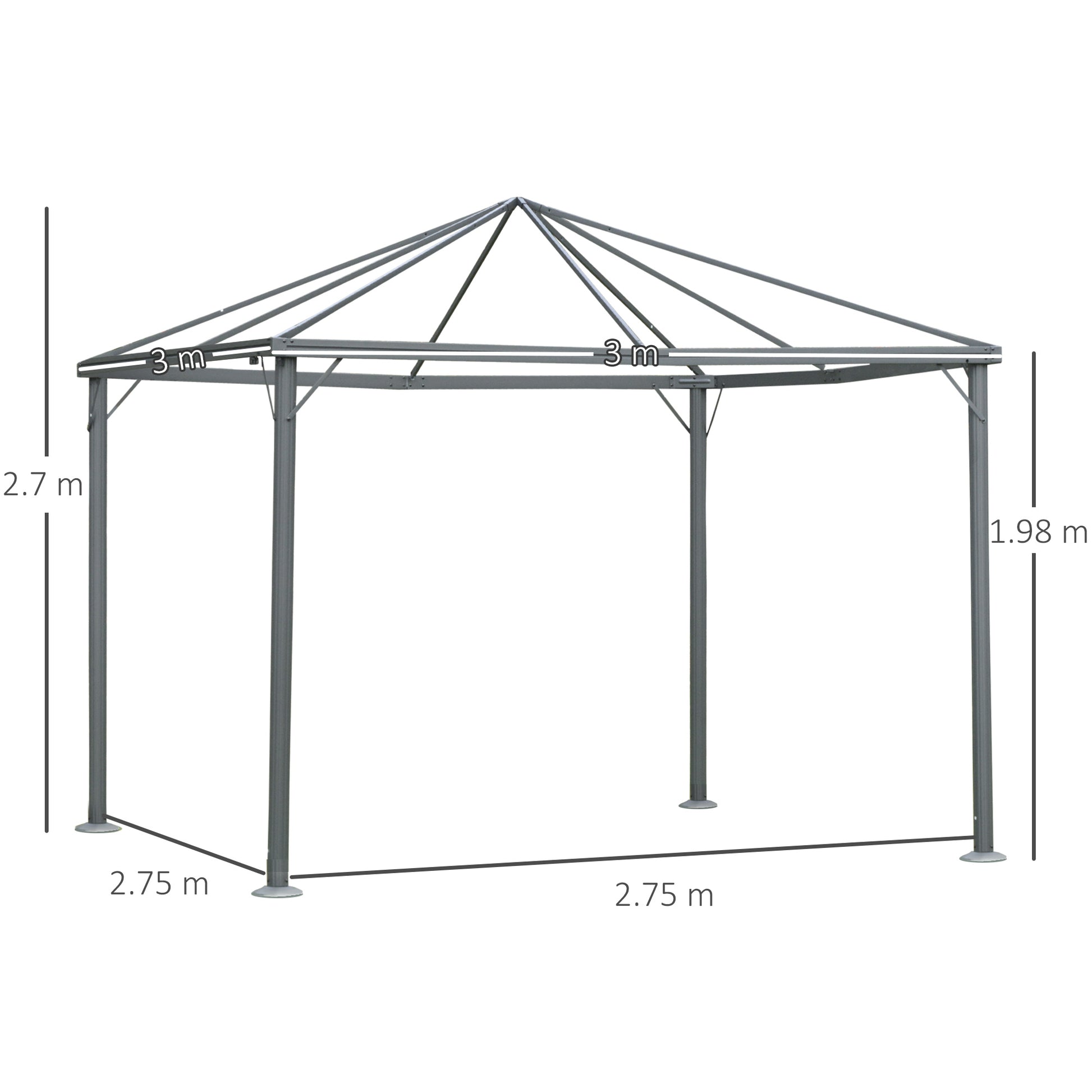 - Overall Dimension: 3L x 3W x 2.7H m