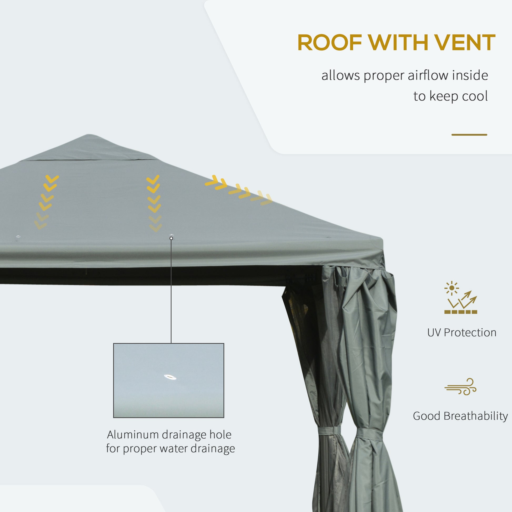- Mesh netting sidewalls to protect from mosquitos outdoors
