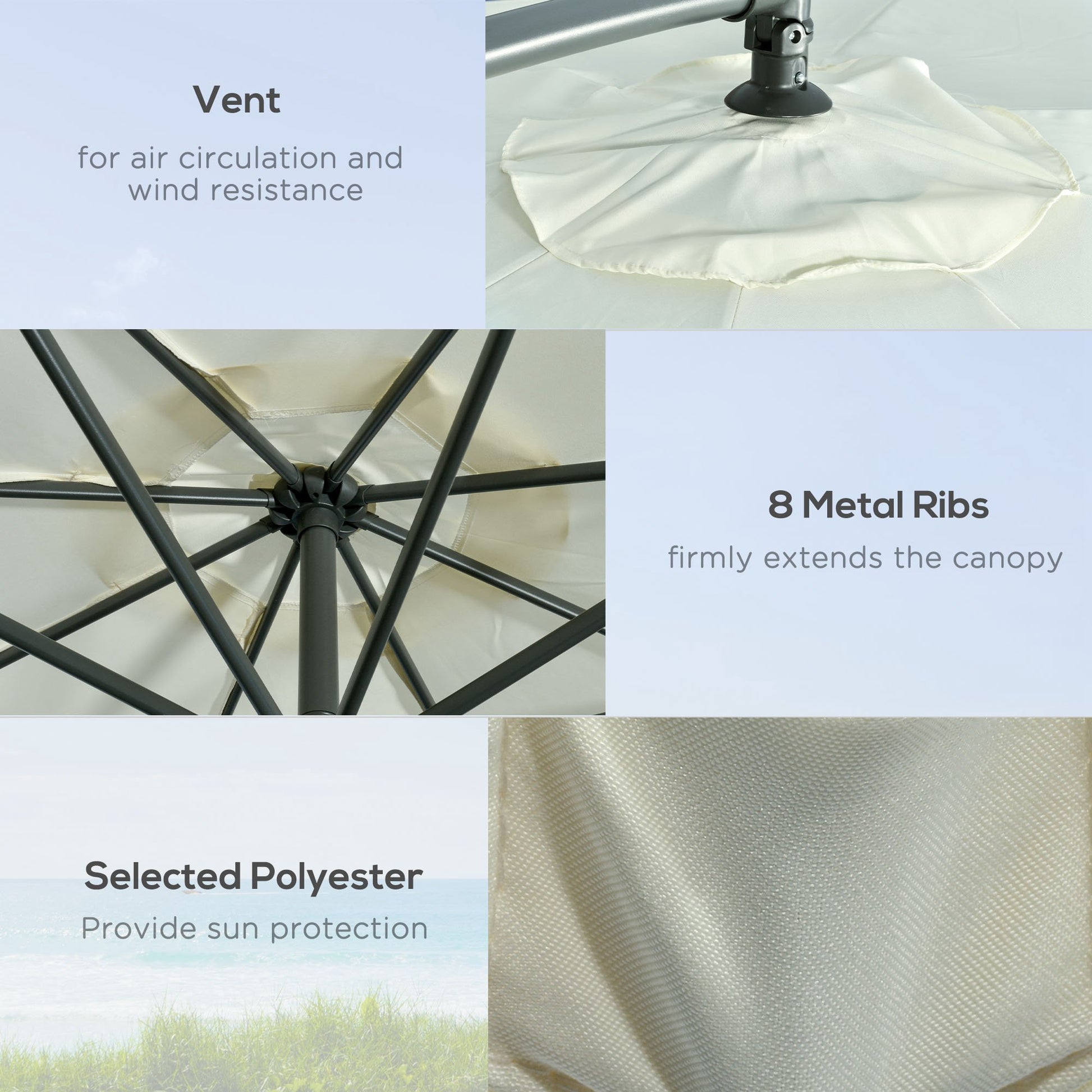 Outsunny 3(m) Garden Parasol Sun Shade Banana Umbrella Cantilever with Crank Handle, Cross Base Beige