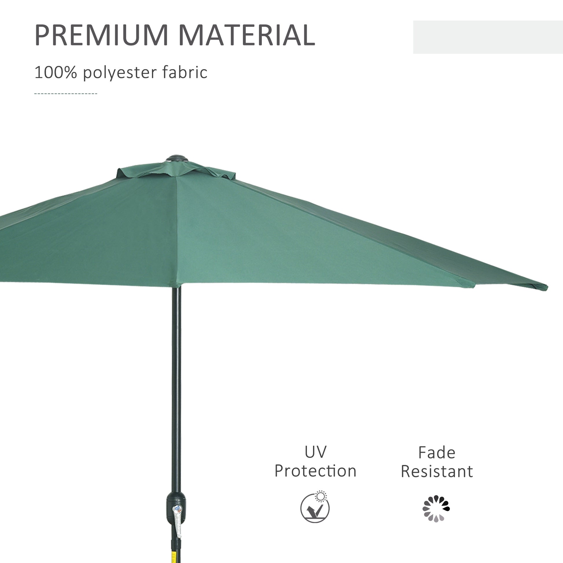 Outsunny 3(m) Half Parasol Semi Round Umbrella Patio Metal Frame Crank Handle for Balcony-- NO BASE INCLUDED, Green