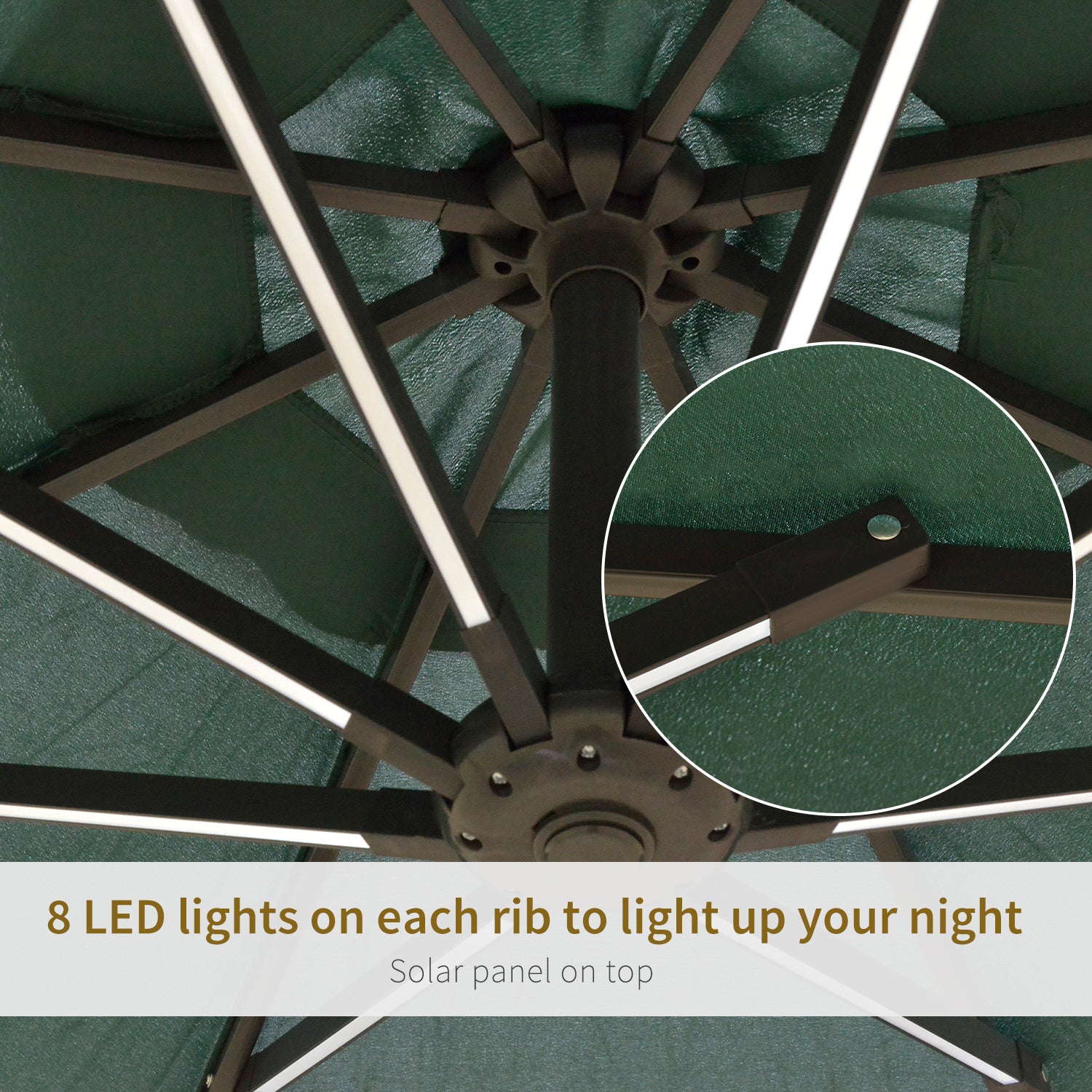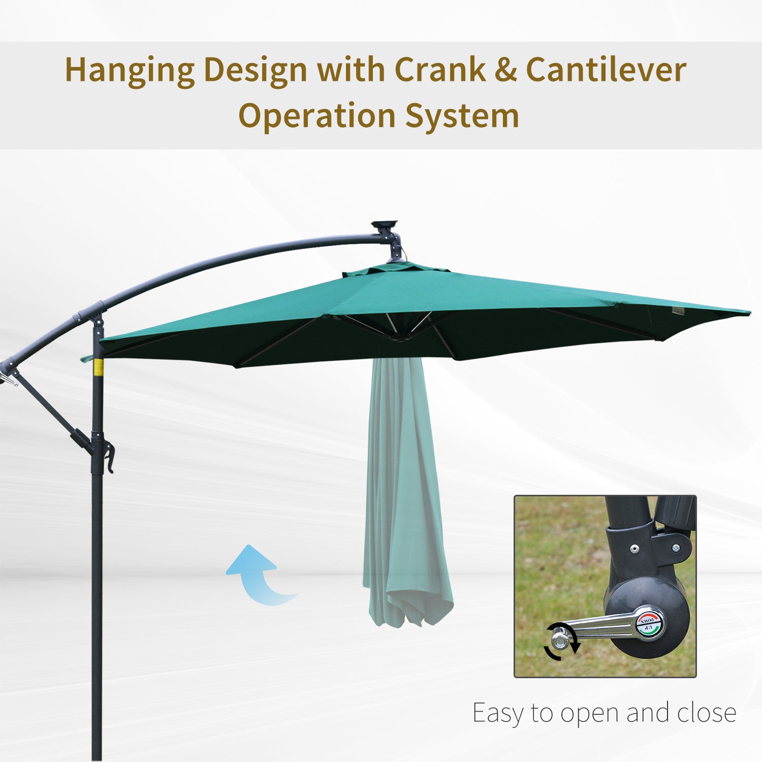 3m LED Cantilever Patio Banana Parasol w/ Crank Cross Base Hanging Offset Umbrella Frame Steel Aluminium Garden Table Outdoor Green