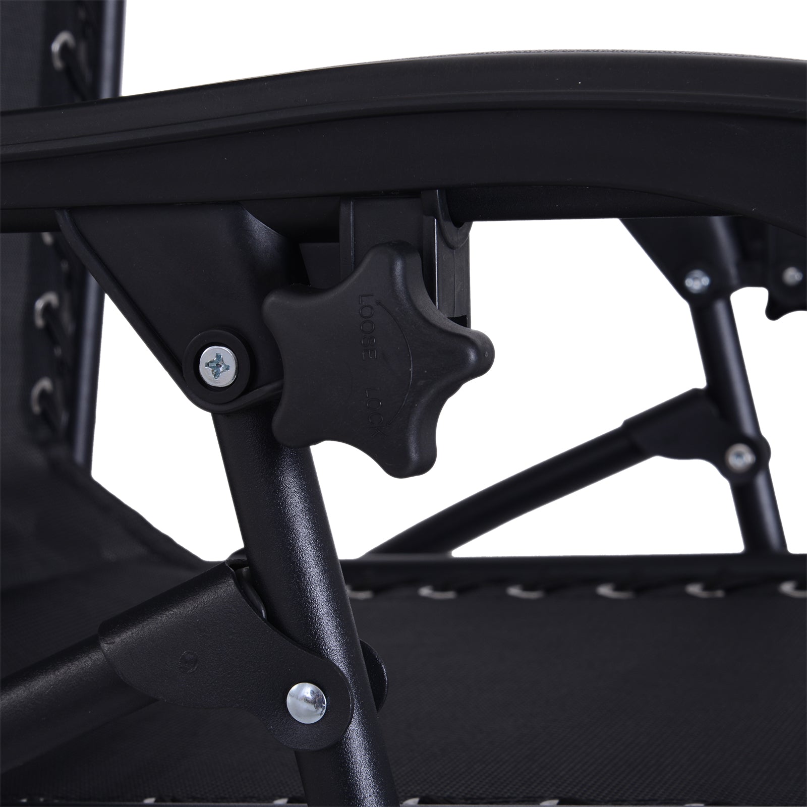 Outsunny 3pcs Folding Zero Gravity Chairs Sun Lounger Table Set w/ Cup Holders Reclining Garden Yard Pool, Black