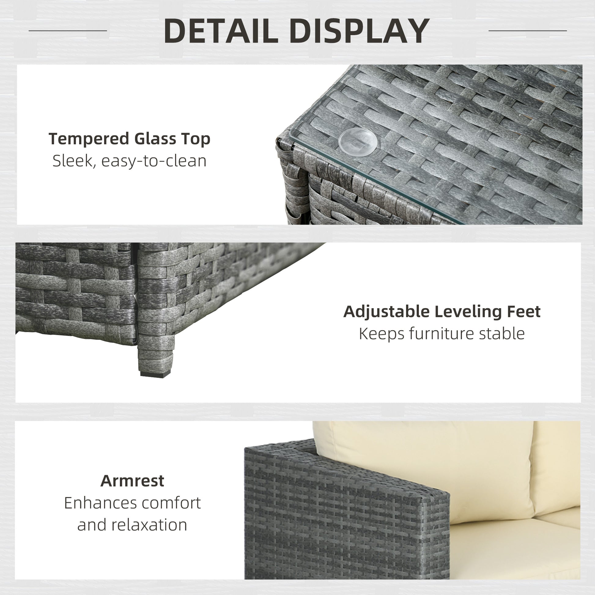 Outsunny 3 Piece Rattan Garden Furniture 4 Seater Outdoor Patio Corner Sofa Chair Set with Coffee Table Thick Cushions, Beige