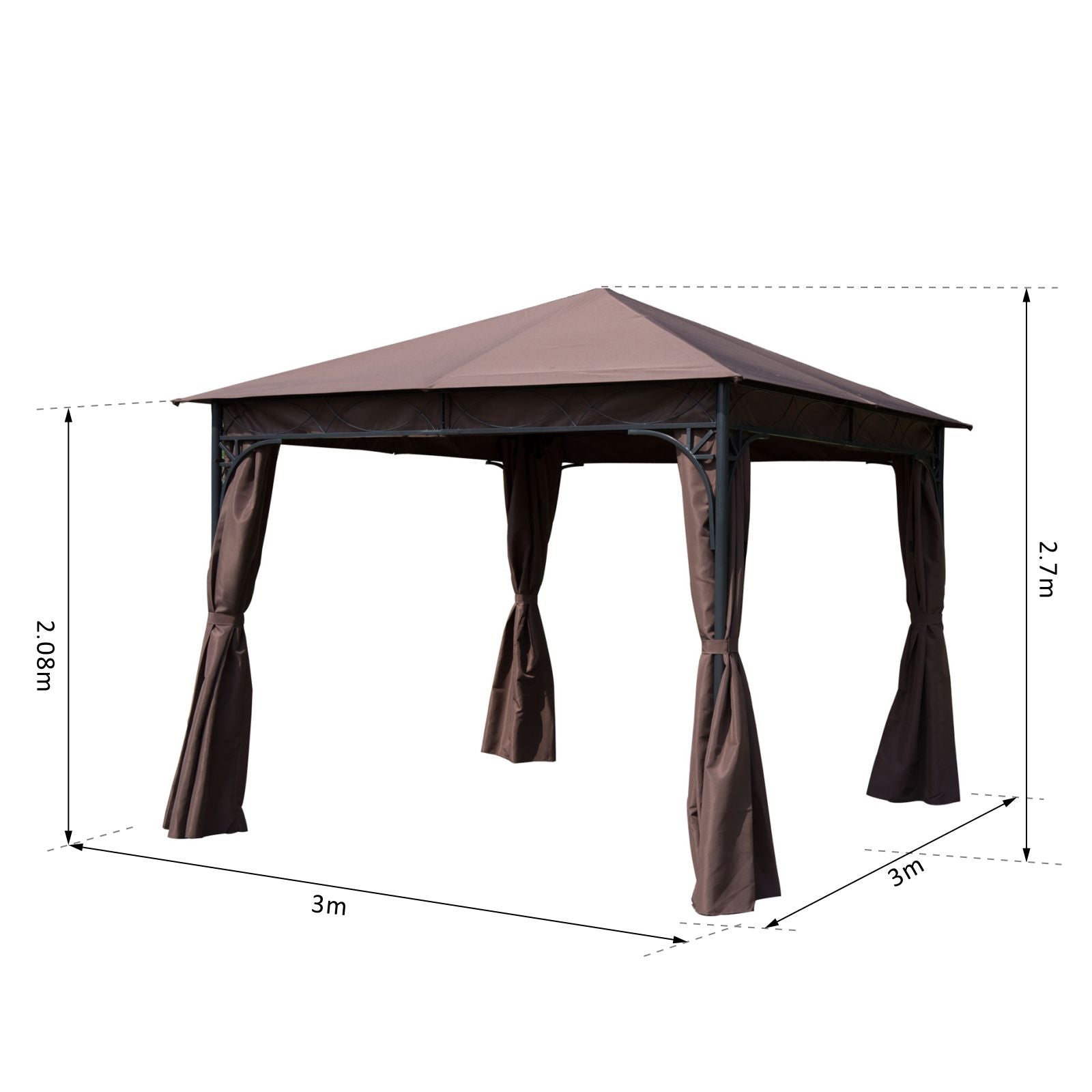 Outsunny 3x3 m Gazebo Pavilion-Coffee