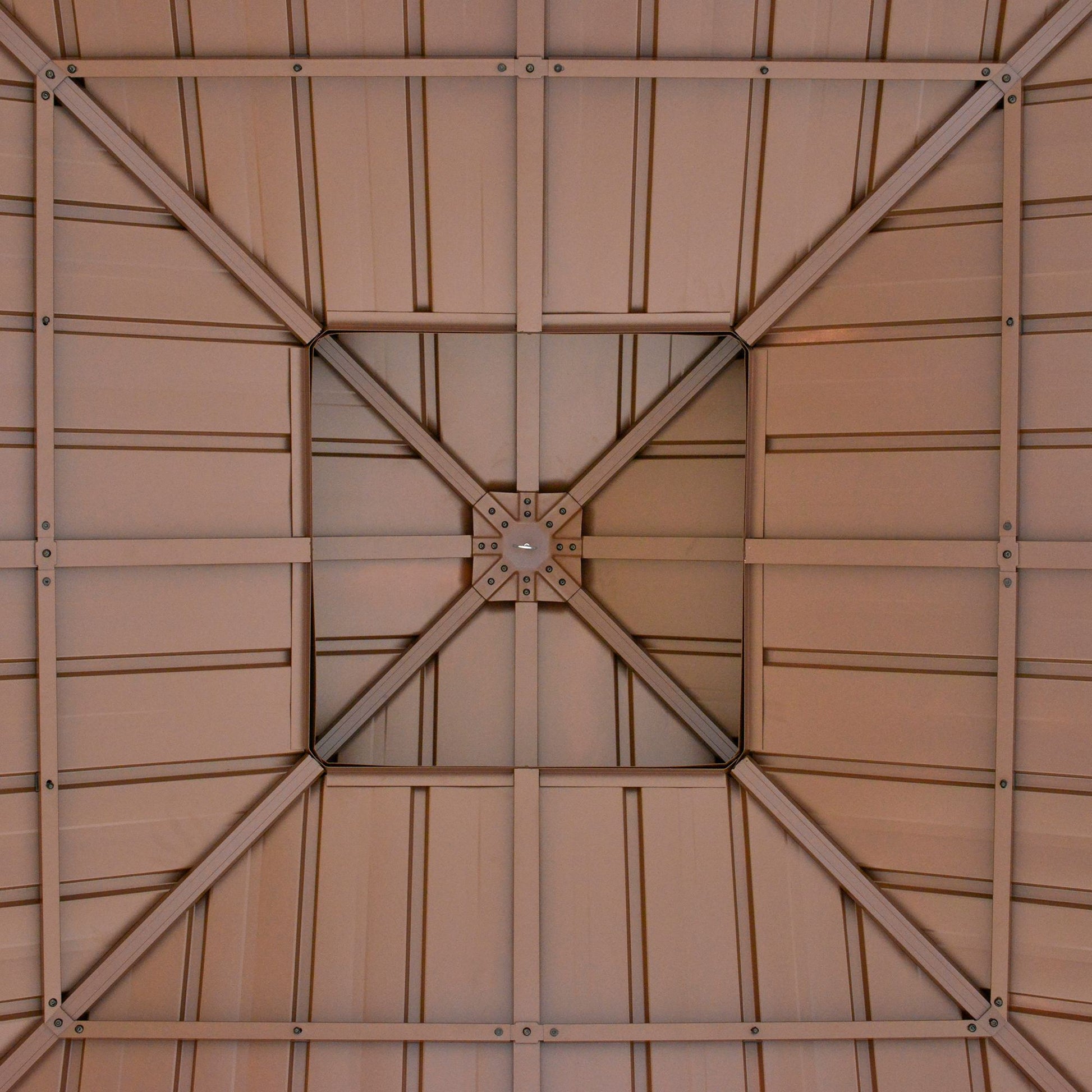Outsunny 3x(3)M Outdoor Hardtop Gazebo Canopy with 2-Tier Roof and Solid Wood Frame, Outdoor Patio Shelter for Patio, Garden, Brown