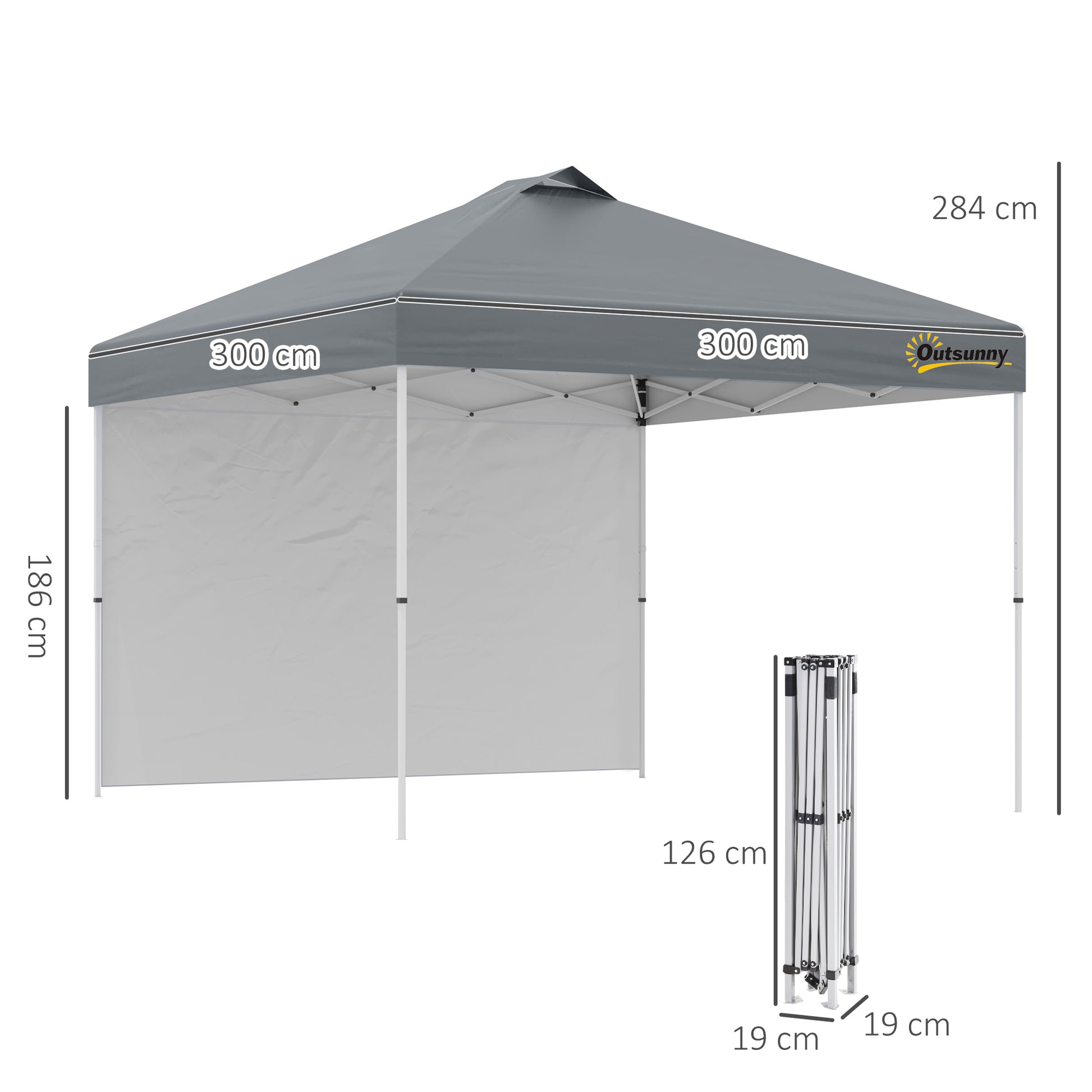 Outsunny 3x(3)M Pop Up Gazebo Tent with 1 Sidewall, Roller Bag, Adjustable Height, Event Shelter Tent for Garden, Patio, Grey