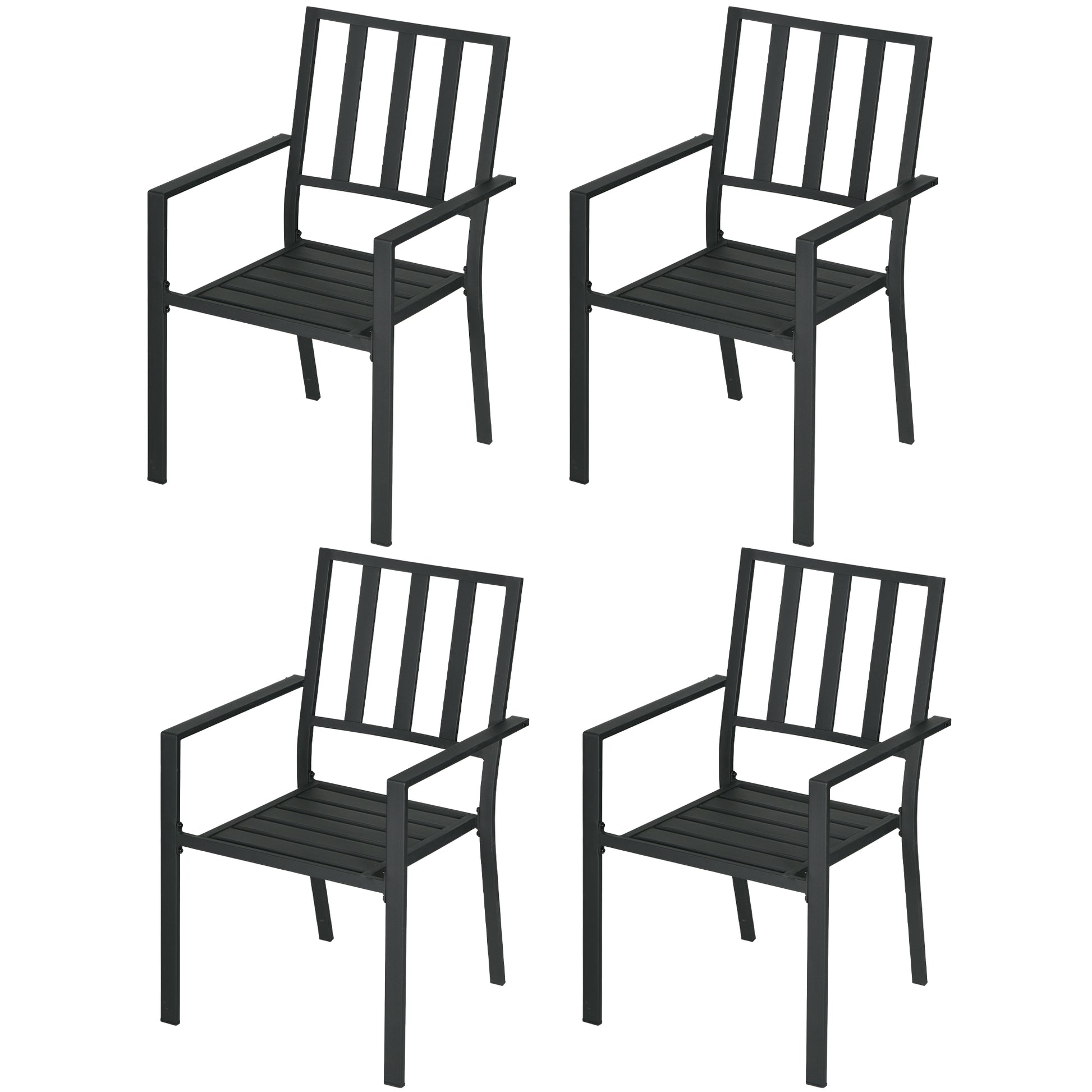 Outsunny 4 PCs Patio Dining Chairs with Metal Slatted Design, Black