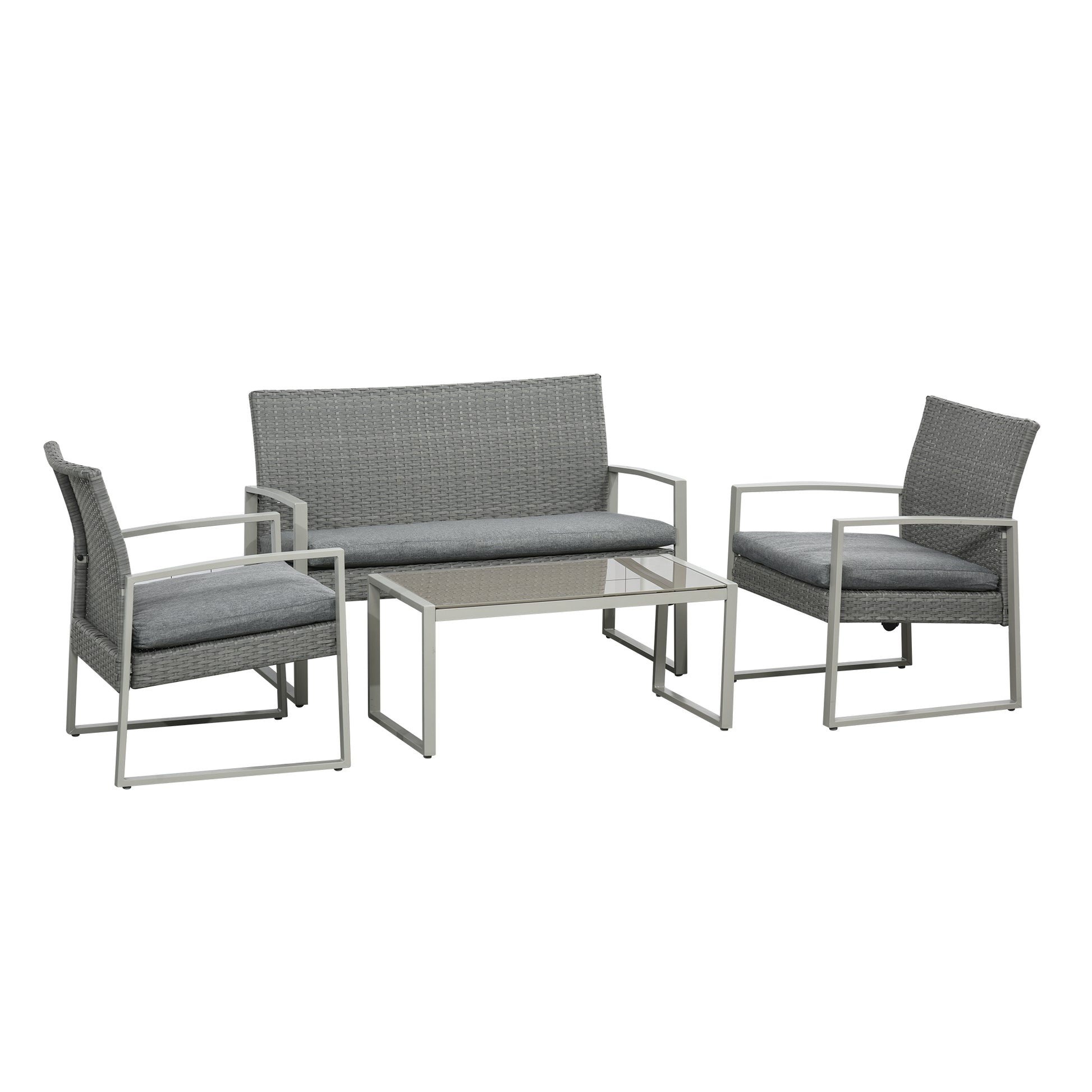 Outsunny 4 Piece PE Rattan Wicker Sofa Set Outdoor Conservatory Furniture Lawn Patio Coffee Table w/ Cushion, Grey