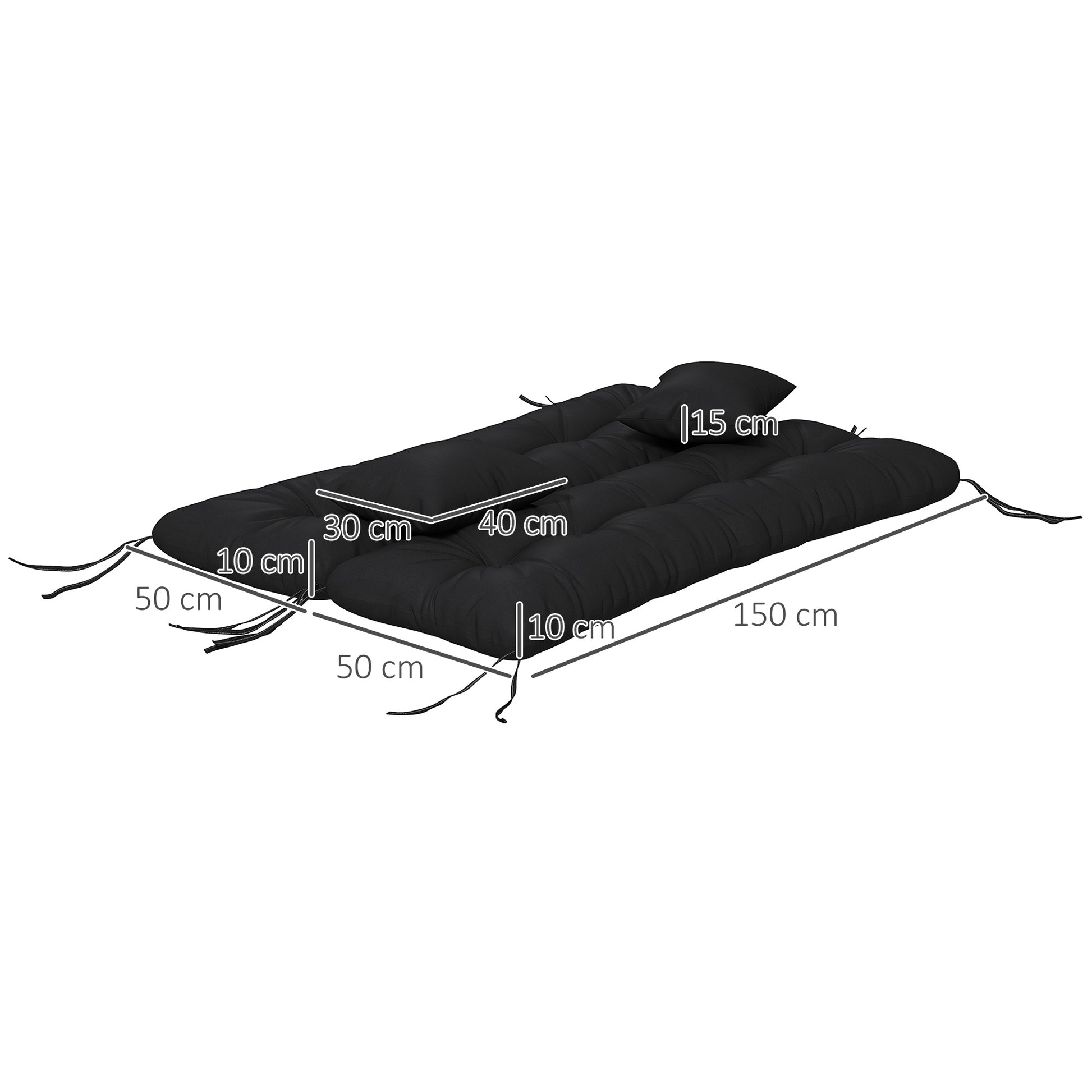 Outsunny 4-Piece Back and Seat Cushion Replacement with 2 Pillows, Patio Chair Cushions Set with Ties, Black