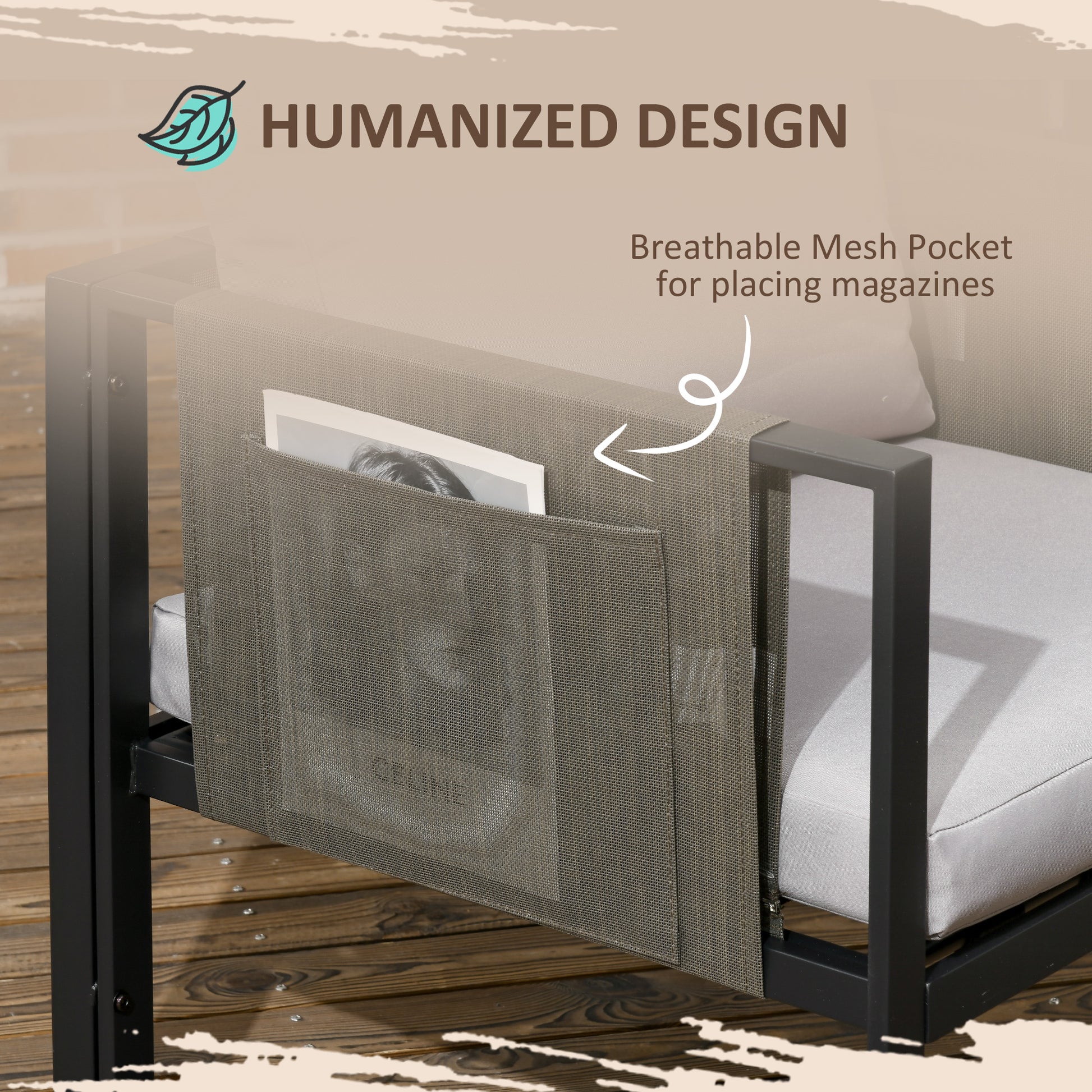 - Colour: Light Grey Cushion, Dark Grey Texteline Pocket, Black Frame