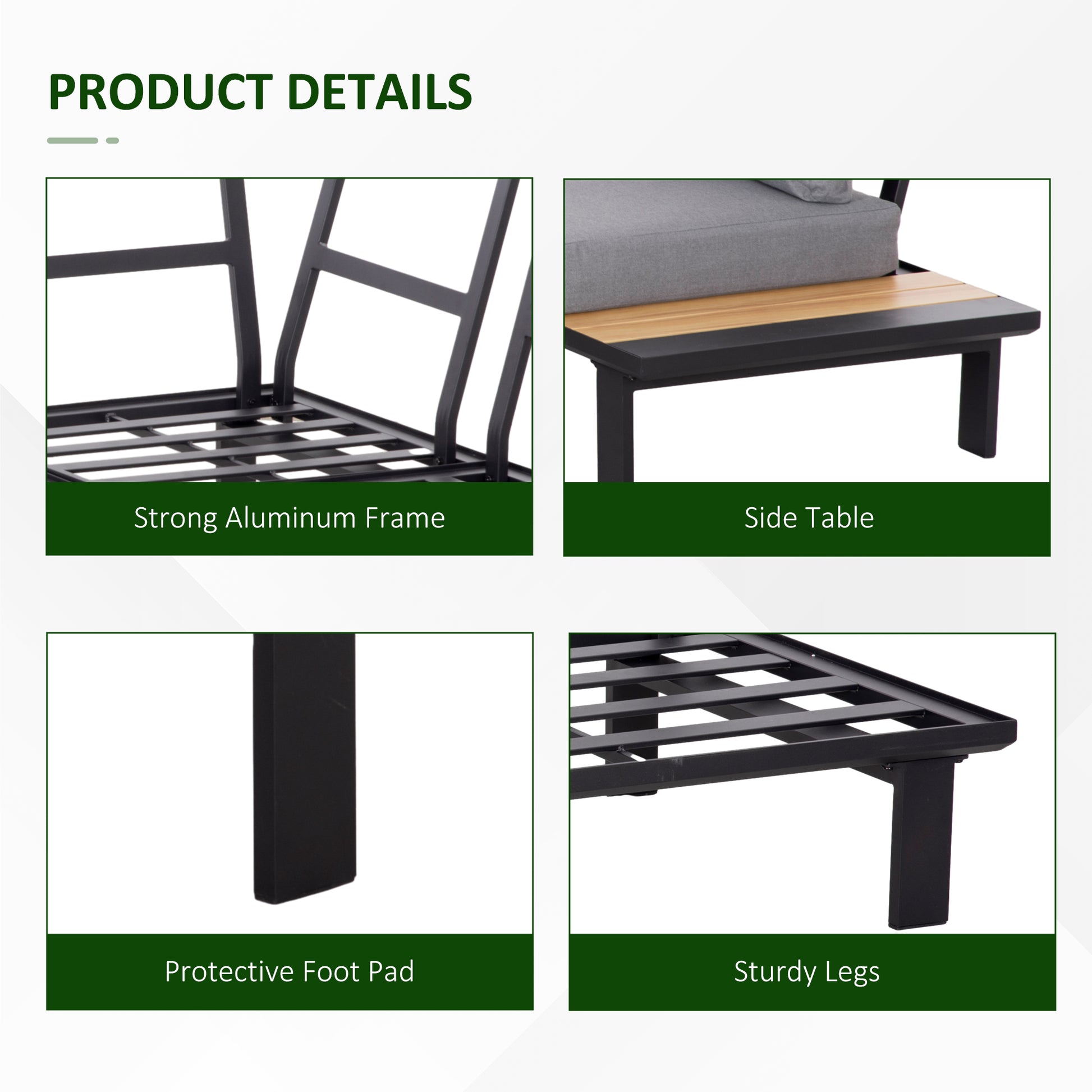 Outsunny 4 Pieces Aluminium Garden Furniture Set L Shape Sofa Set with Tables, Cushions for Indoor, Garden, Patio, Dark Grey