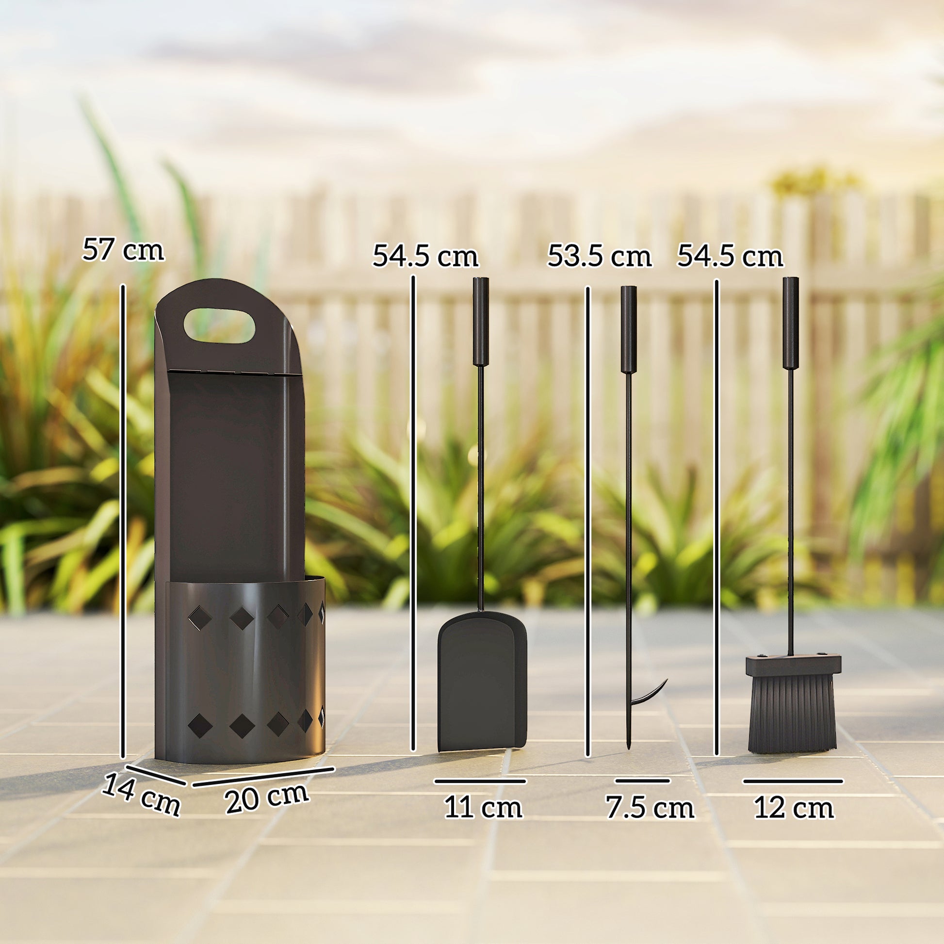 Warm up your hearth with the Outsunny fireplace companion set, a charming addition to any indoor or outdoor setting. This four-piece set includes a broom, a shovel, a poker and a bucket, all crafted in metal with a sleek black powder coating. Enjoy effortless maintenance and a timeless look with these essential fireplace accessories.