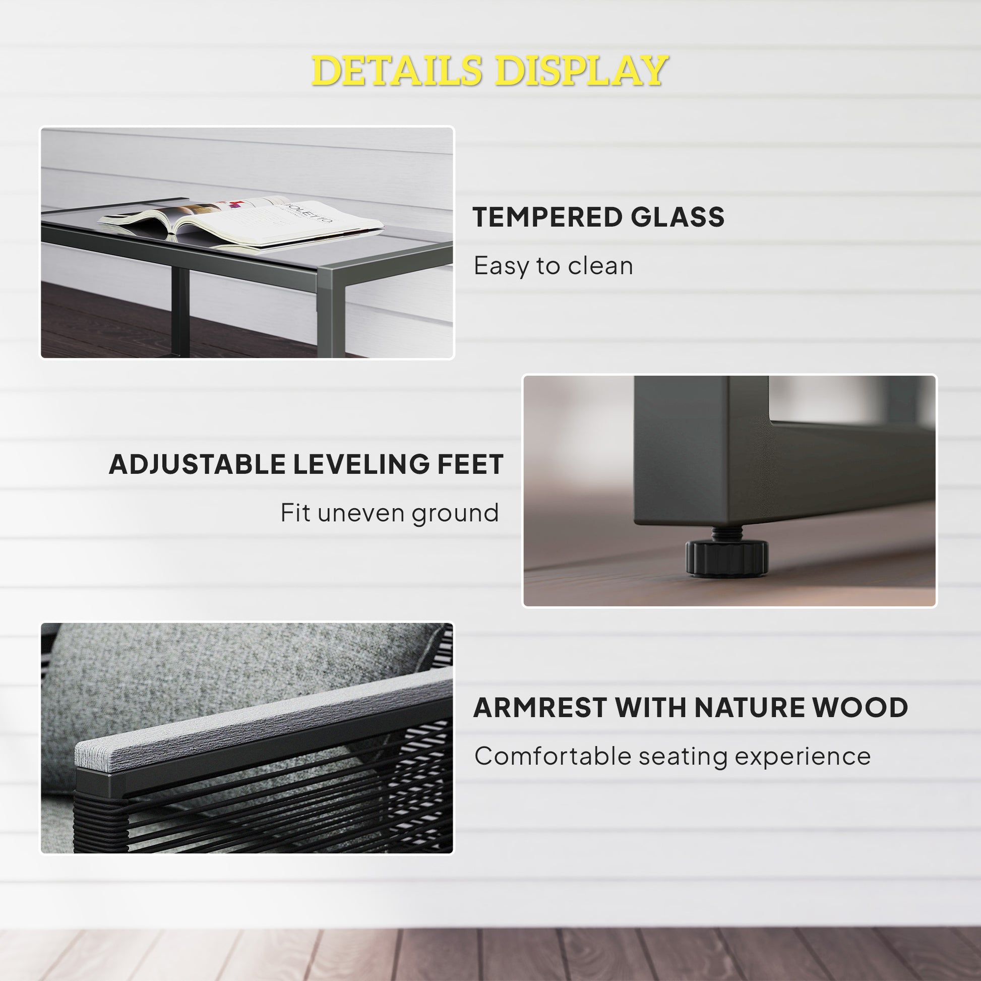 Outsunny 4 Pieces Rattan Garden Furniture Set - Charcoal Grey