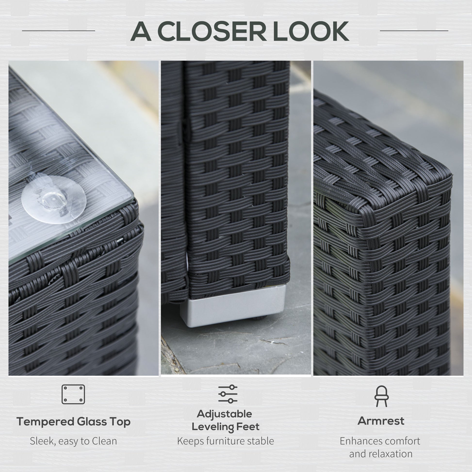 Outsunny 4-Seater Garden Rattan Furniture Outdoor Sectional Rattan Sofa Set Coffee Table Combo Patio Furniture Metal Frame w/ Cushion Pillows Black