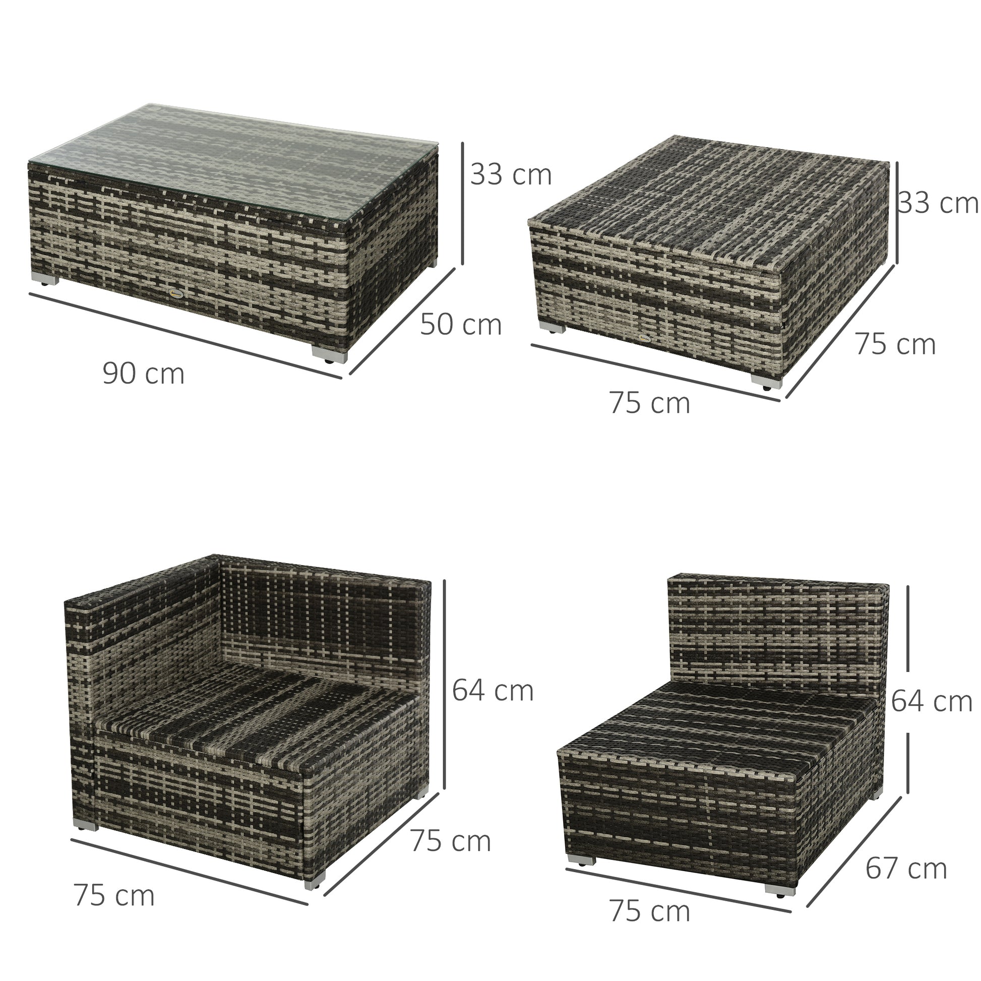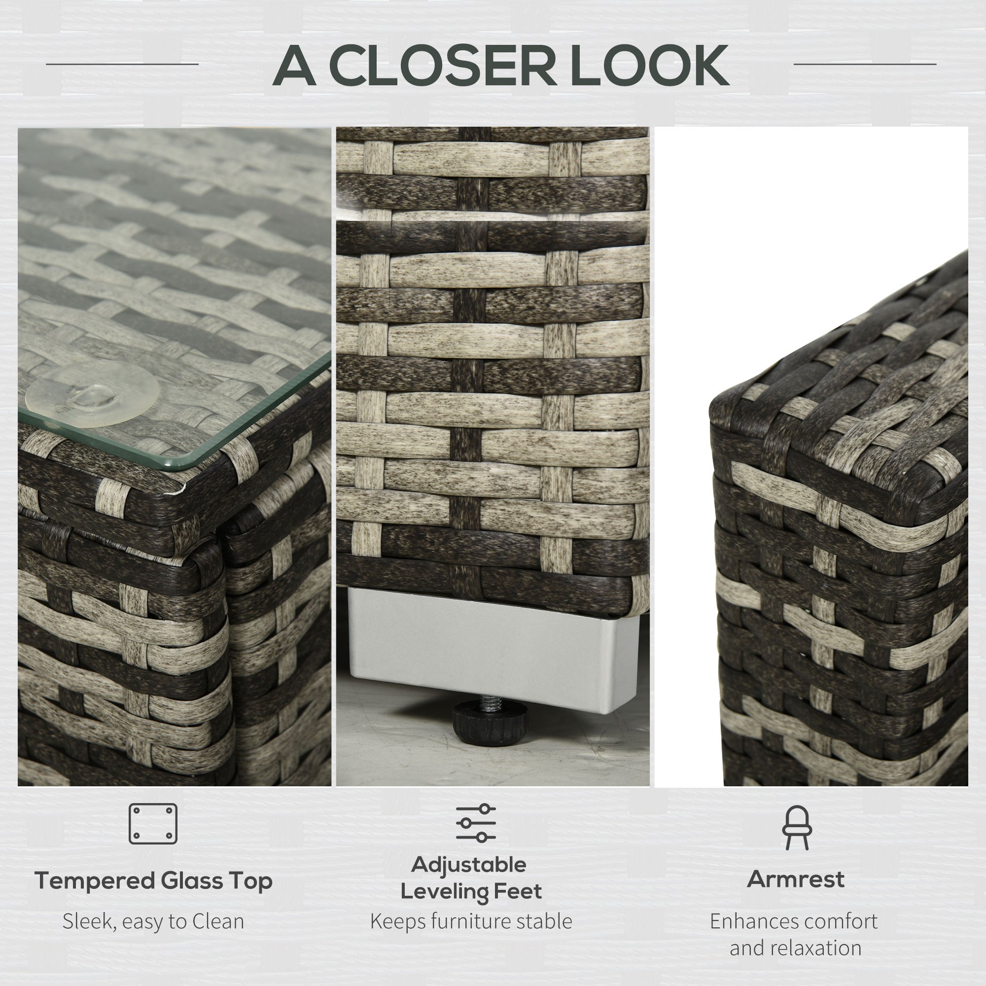 Outsunny 4-Seater Garden Rattan Furniture Set, Outdoor Sectional Conversation PE Rattan Sofa Set, with Cushions Pillows and Glass Table, Mixed Grey