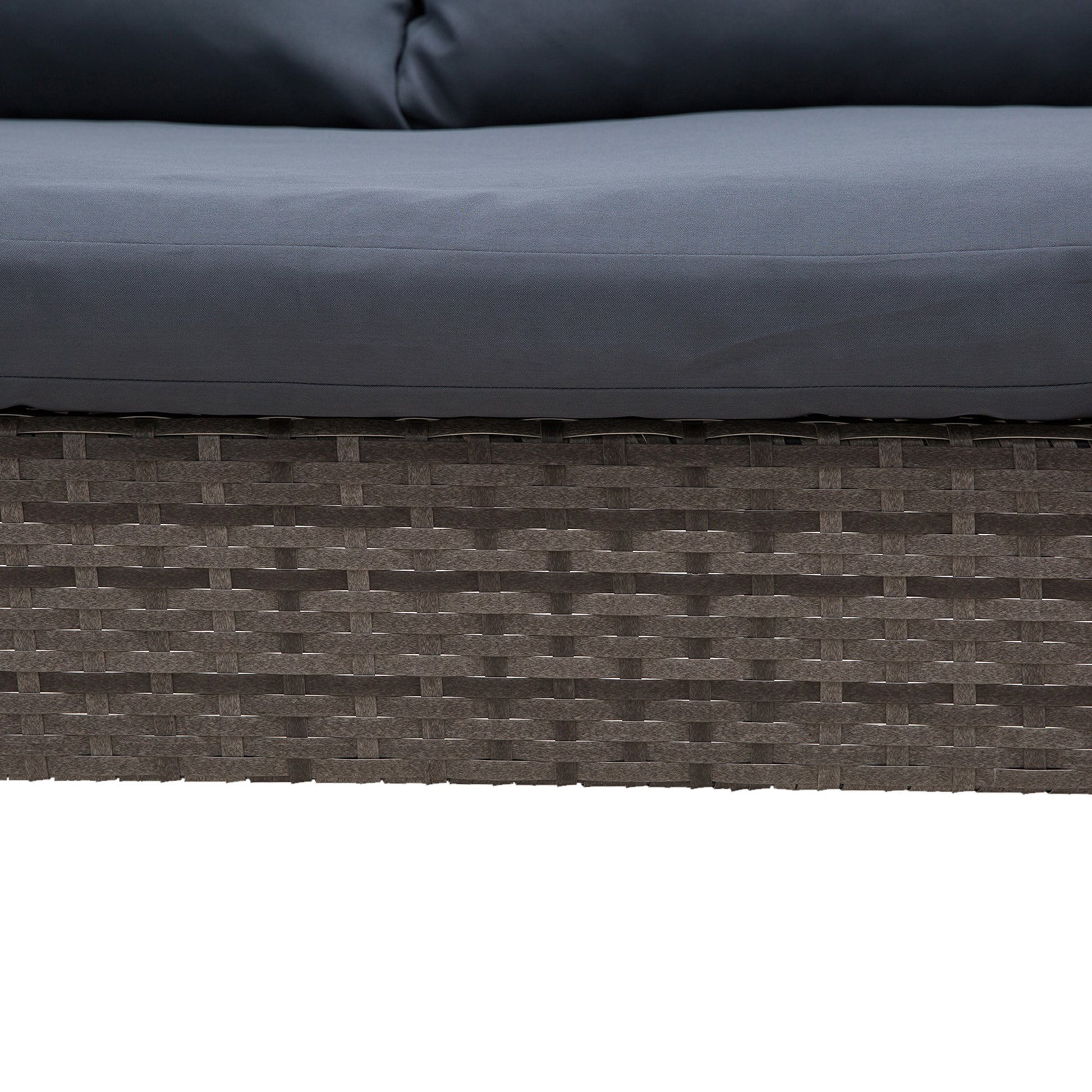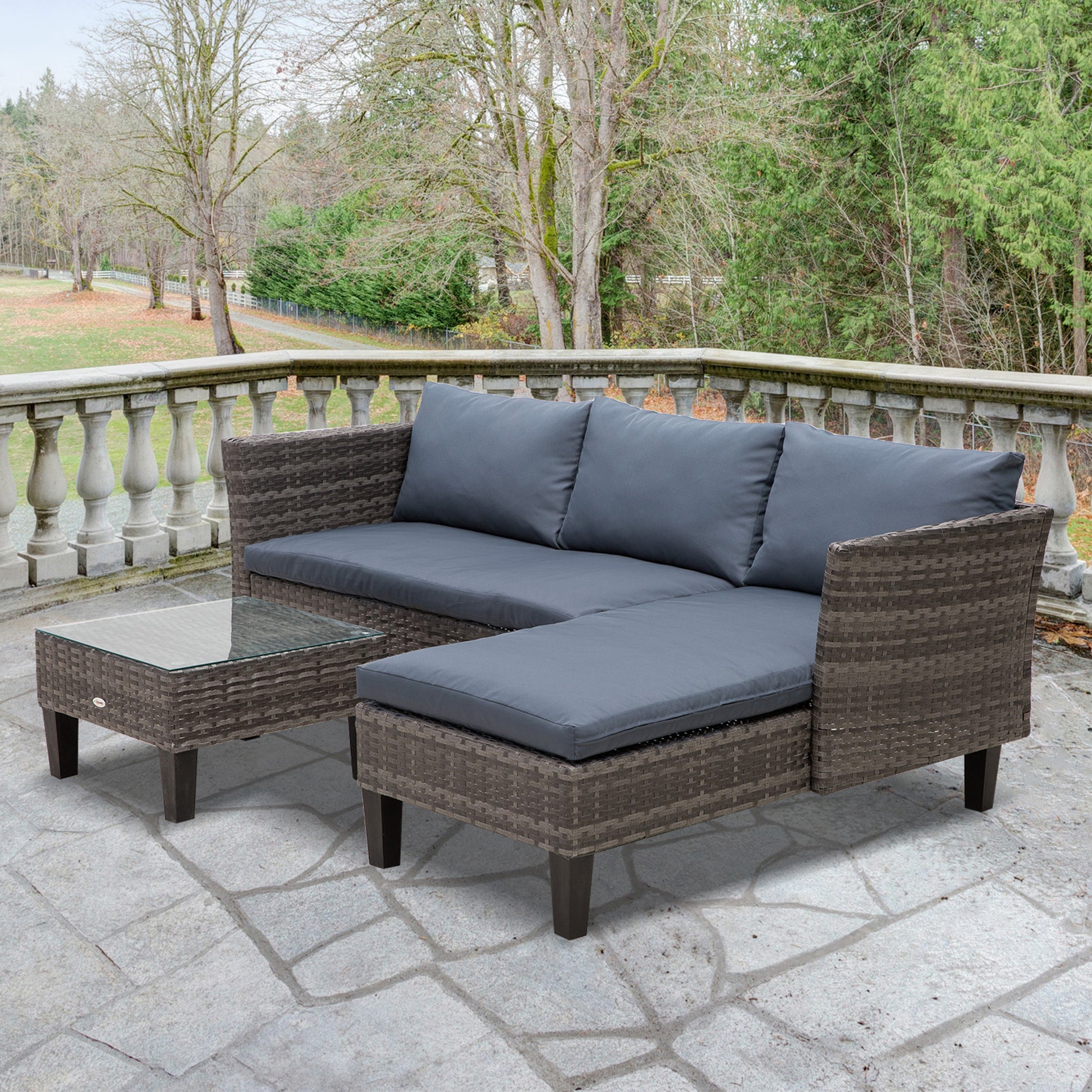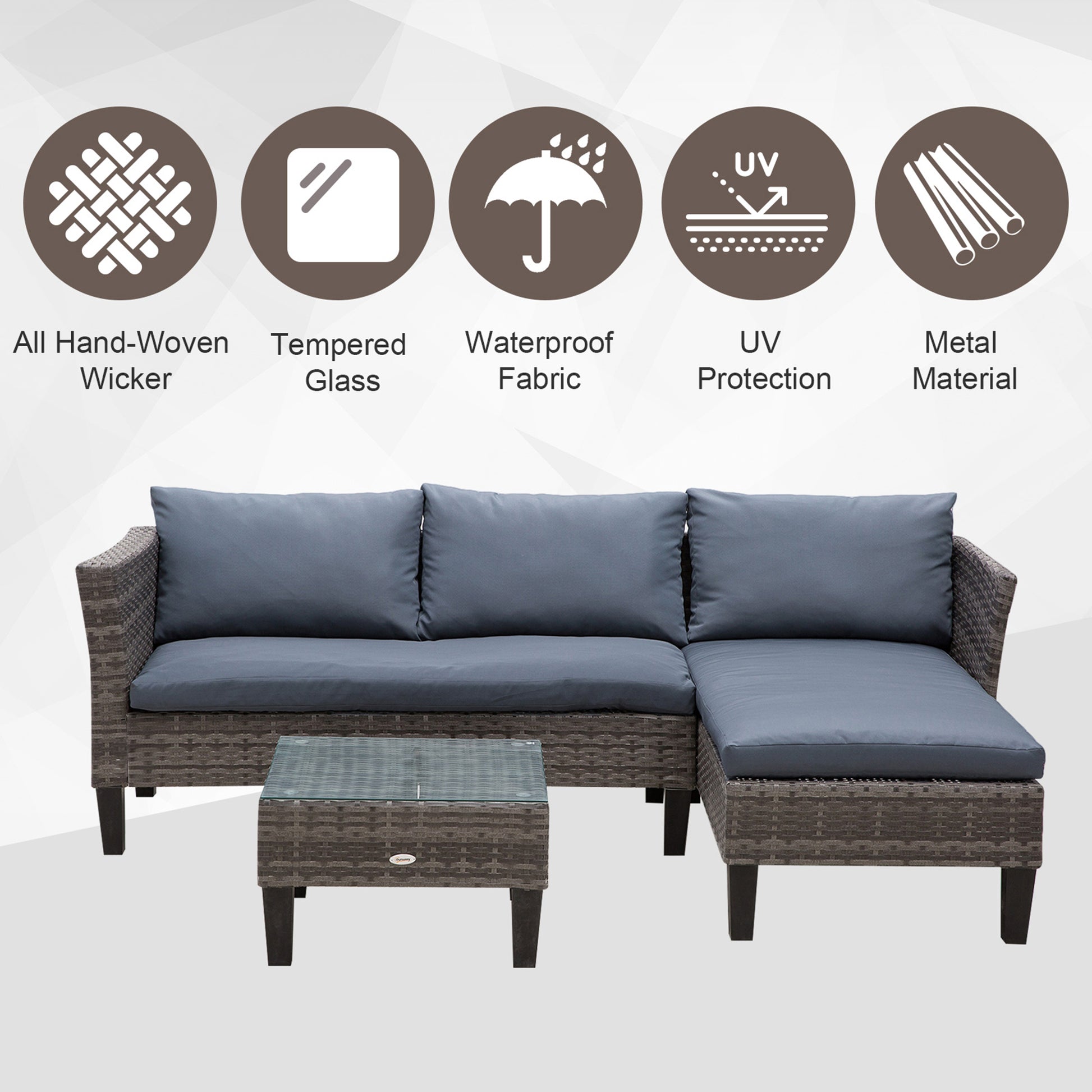 Outsunny 4-Seater Garden Sofa PE Rattan Set w/ 2 Seats Square Glass Top Coffee Table Thick Cushions Solid Legs Metal Frame Patio L Corner Shape, Grey