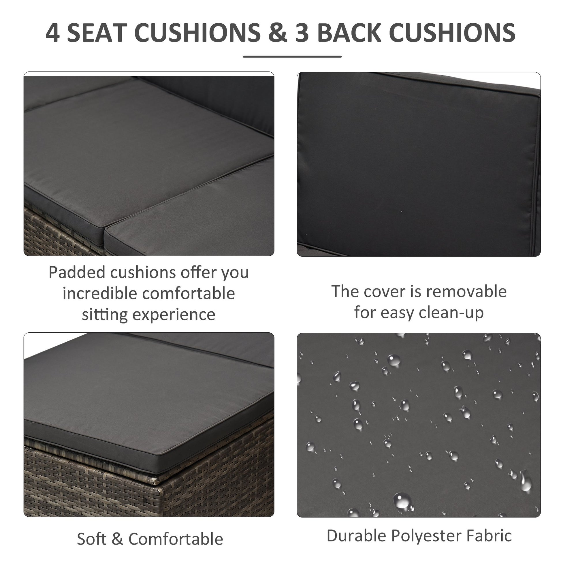 Outsunny 4-Seater Outdoor Garden Rattan Furniture Set w/ Table Grey