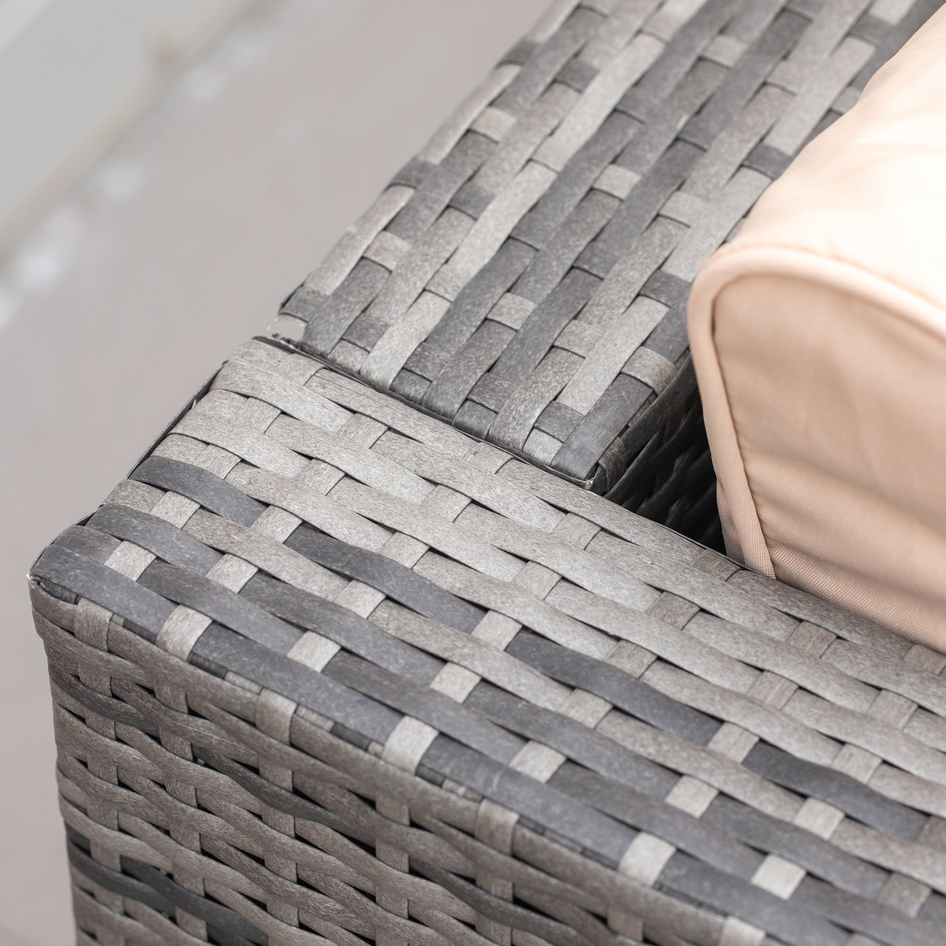 This outdoor corner sofa from Outsunny. The small garden furniture is made of weather-proof rattan with a metal frame for extra support and stability, giving you more time to relax and enjoy the sun. Featuring two loveseats and a square coffee table, there's plenty of room for yourself and friends, with plush padded cushions to provide all day comfort and support. The conservatory furniture set is finished with a tempered glass top on the coffee table for a stylish garden set.