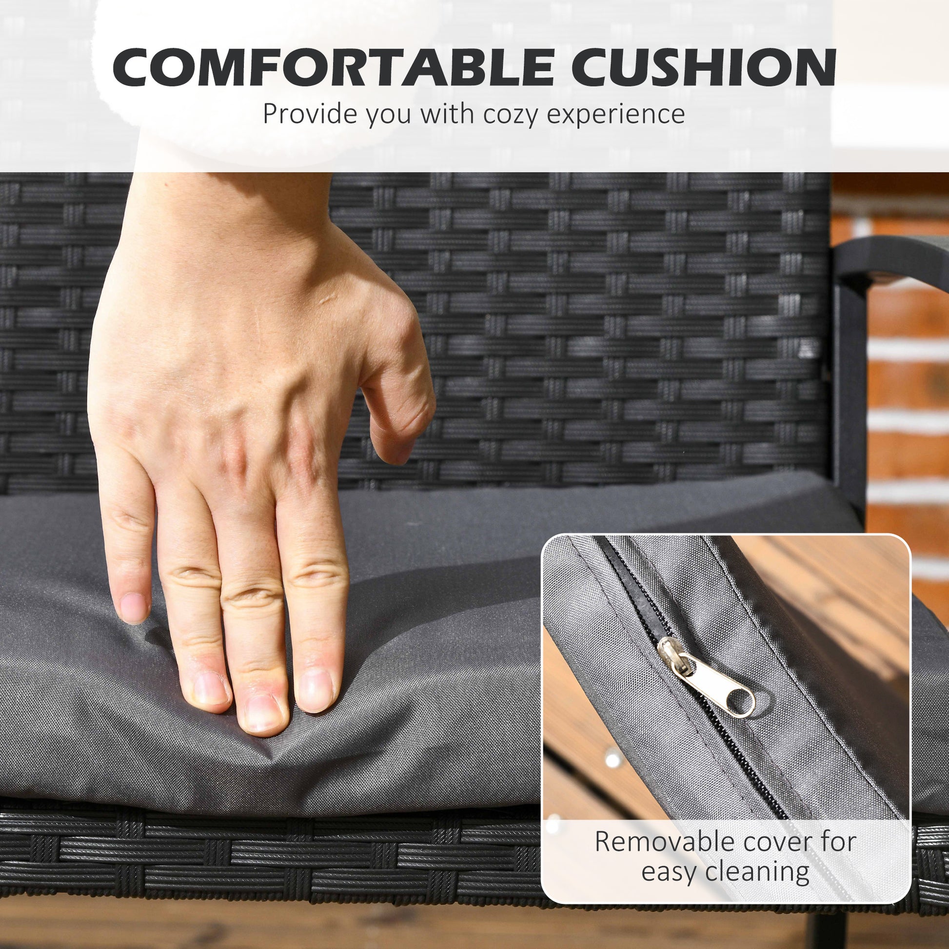 Outsunny 4 Seater Rattan Garden Furniture Set 5 Pieces Outdoor Dining Set with Cushions, Umbrella Hole - Black