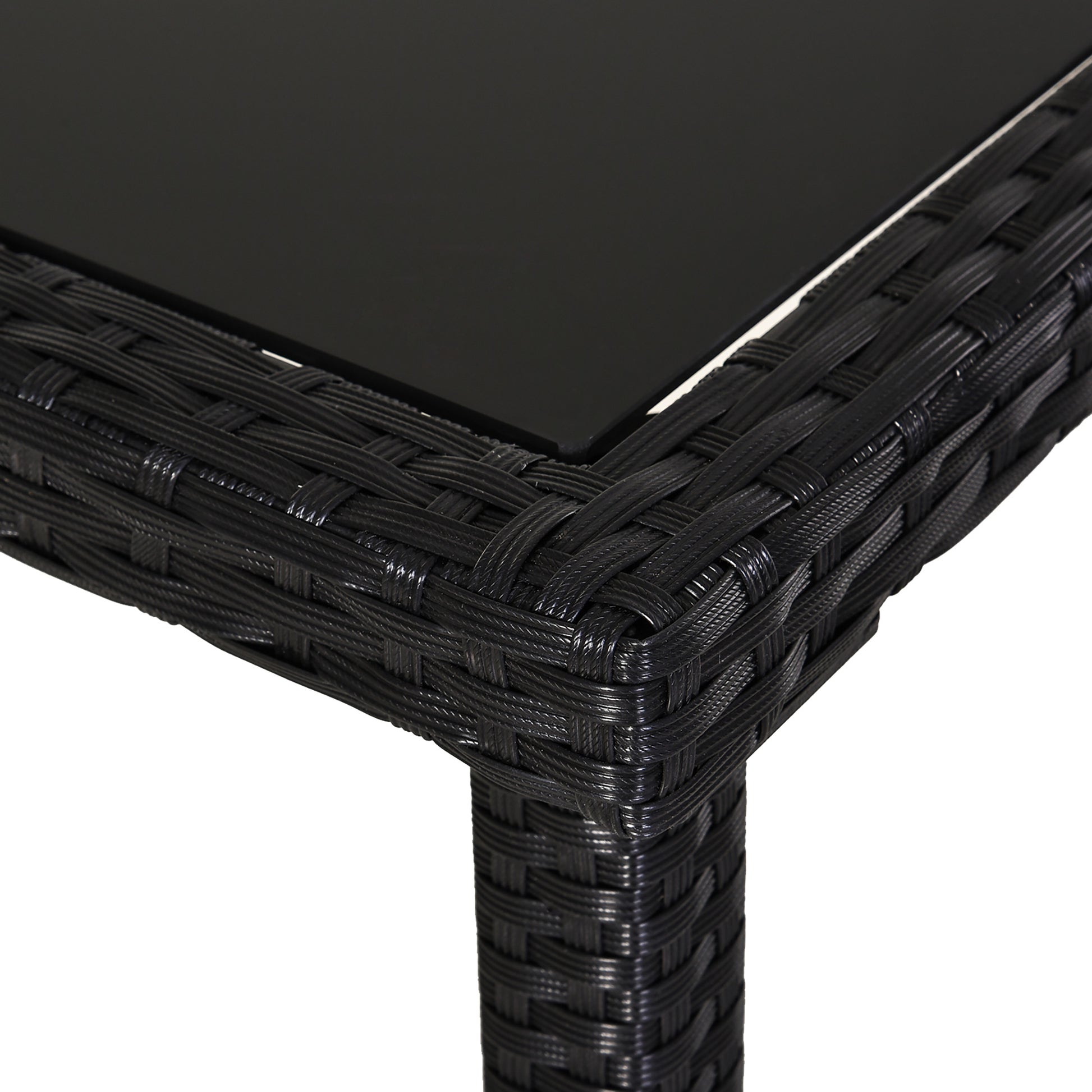 Outsunny 4-Seater Rattan Garden Furniture Space-saving Wicker Weave Sofa Set Conservatory Dining Table Table Chair Footrest Cushioned Black