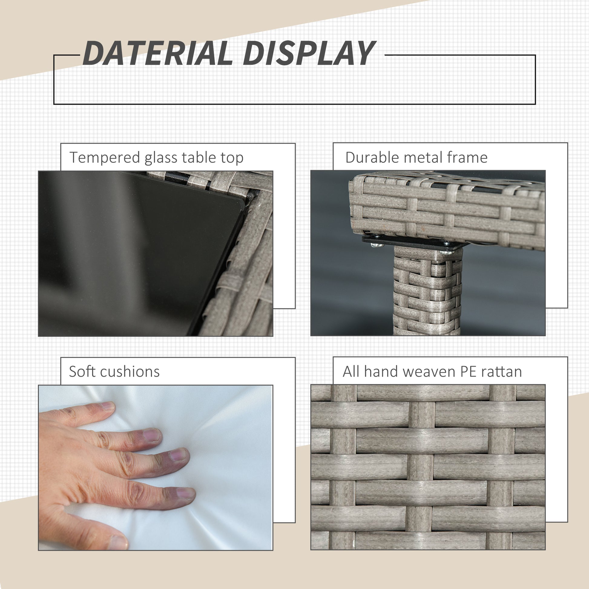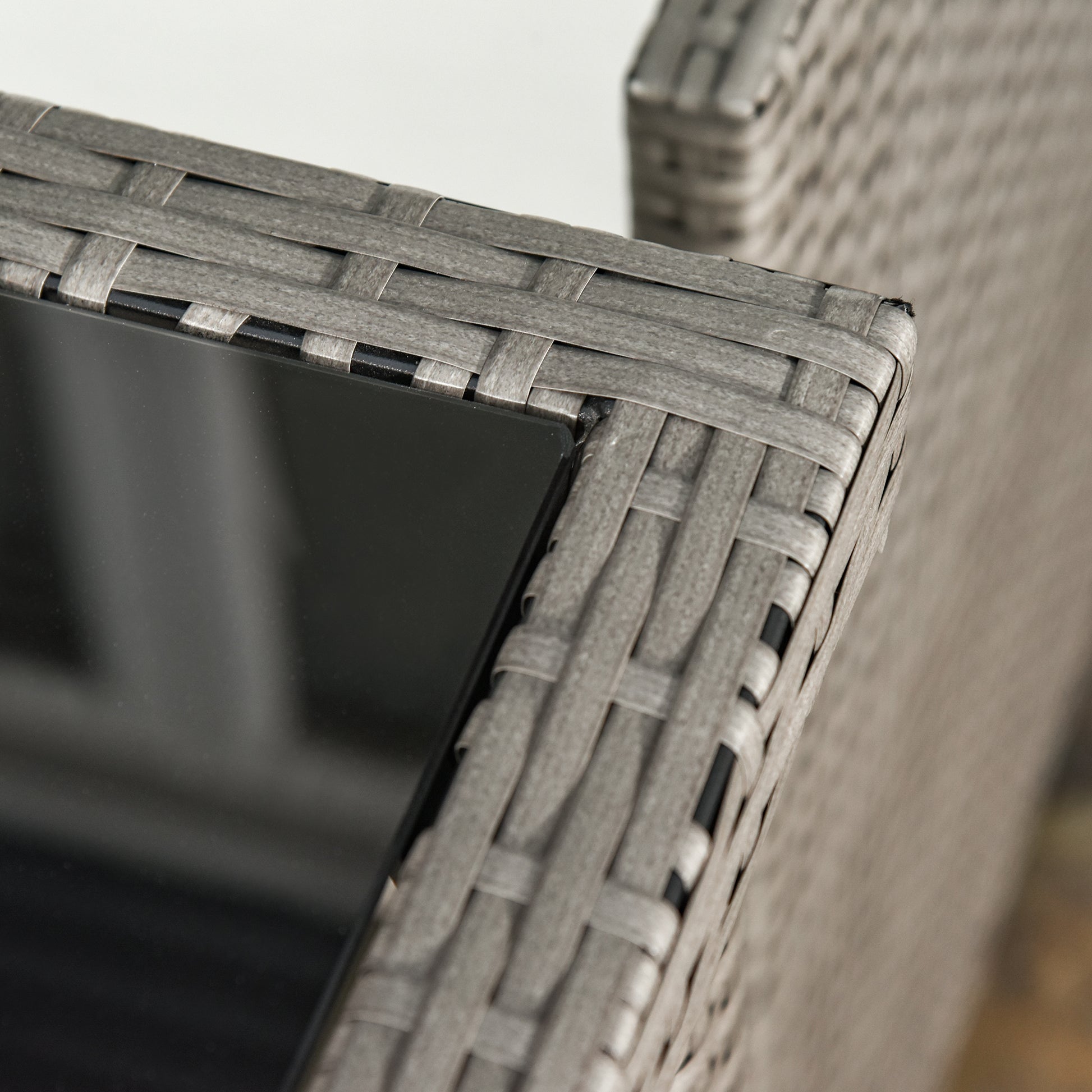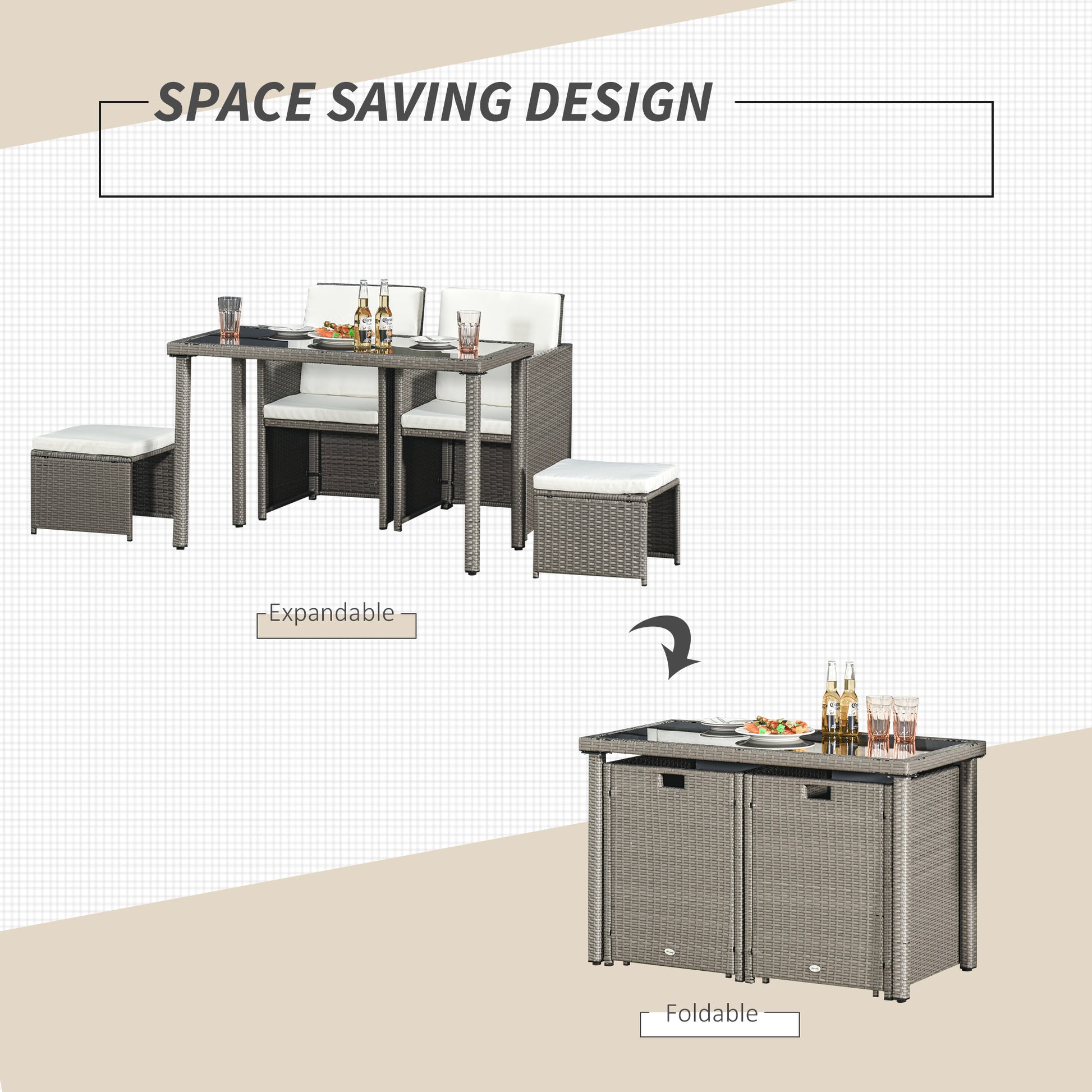 Outsunny 4-Seater Rattan Garden Furniture Space-saving Wicker Weave Sofa Set Conservatory Dining Table Table Chair Footrest Cushioned Grey