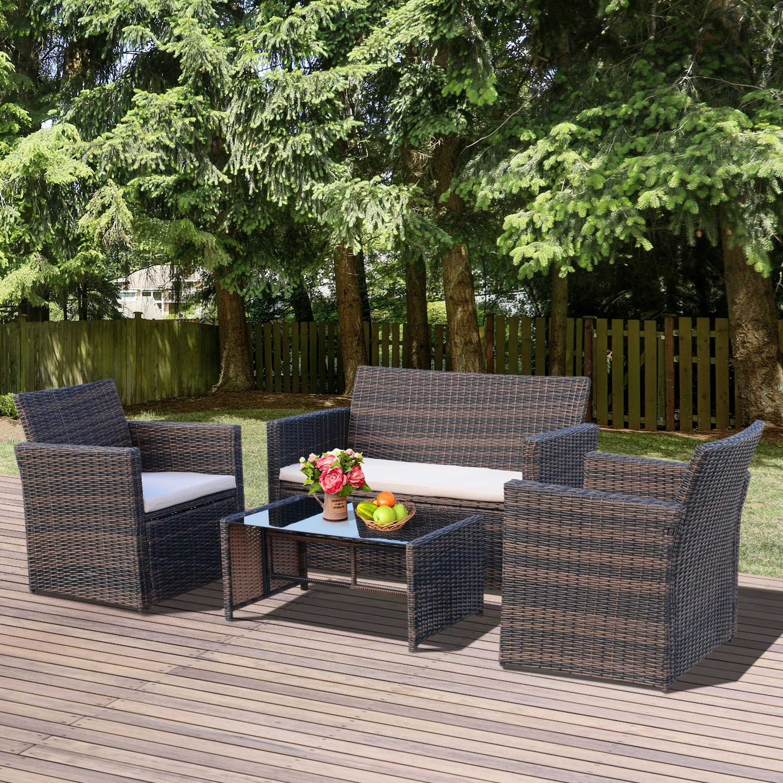 Boring patio? Brighten your garden with Outsunny's 4 pieces garden furniture and make the outside of your home just as inviting as the inside. Oftentimes, due to uncomfortable seating or simply a lack of furniture, many outdoor furniture go underused or ignored completely. Outsunny believes that you can change all that with a simple, budget-friendly investment in our designer conservatory furniture.