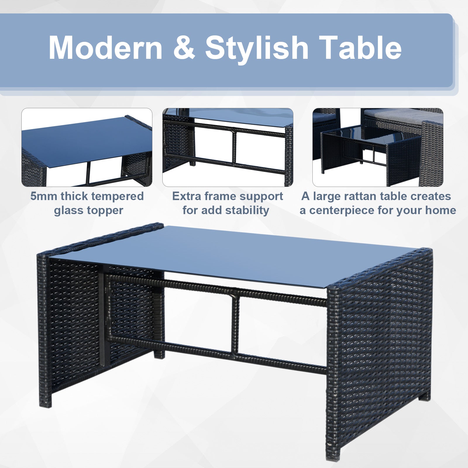 - Weight Capacity: 160kg (armchair), 240kg(Loveseat),50kg(Table)