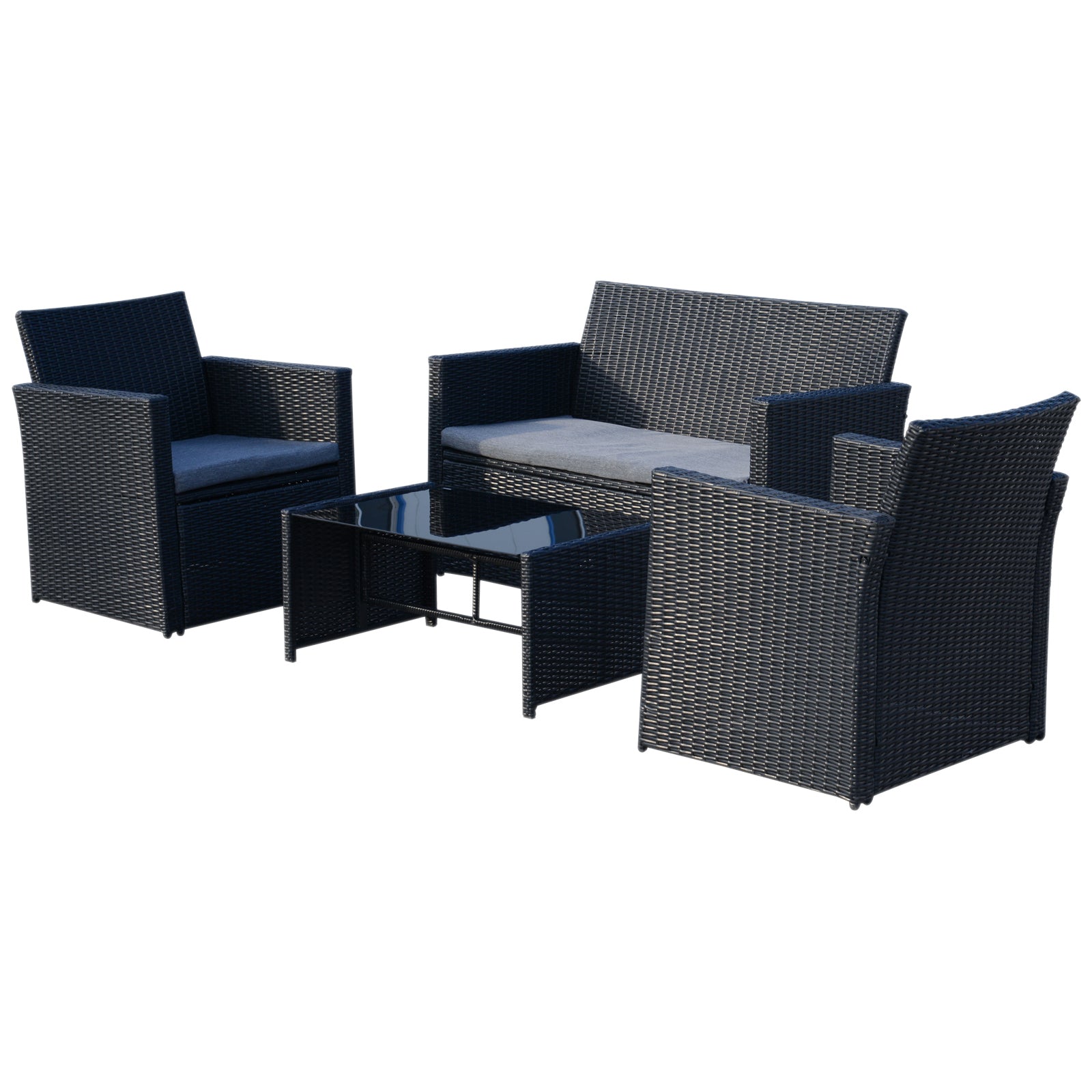Boring patio? Brighten your garden with Outsunny's 4 pieces garden furniture and make the outside of your home just as inviting as the inside. Oftentimes, due to uncomfortable seating or simply a lack of furniture, many outdoor furniture go underused or ignored completely. Outsunny believes that you can change all that with a simple, budget-friendly investment in our designer conservatory furniture.