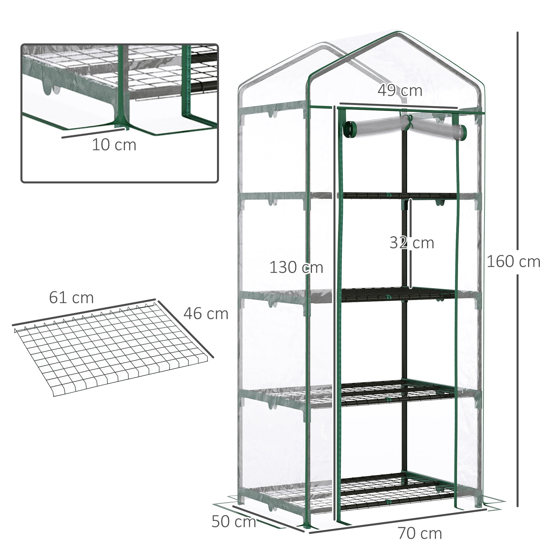 Outsunny 4 Tiers Mini Portable Greenhouse Plant Grow Shed Metal Frame Transparent Clear Cover 160H x 70L x 50Wcm