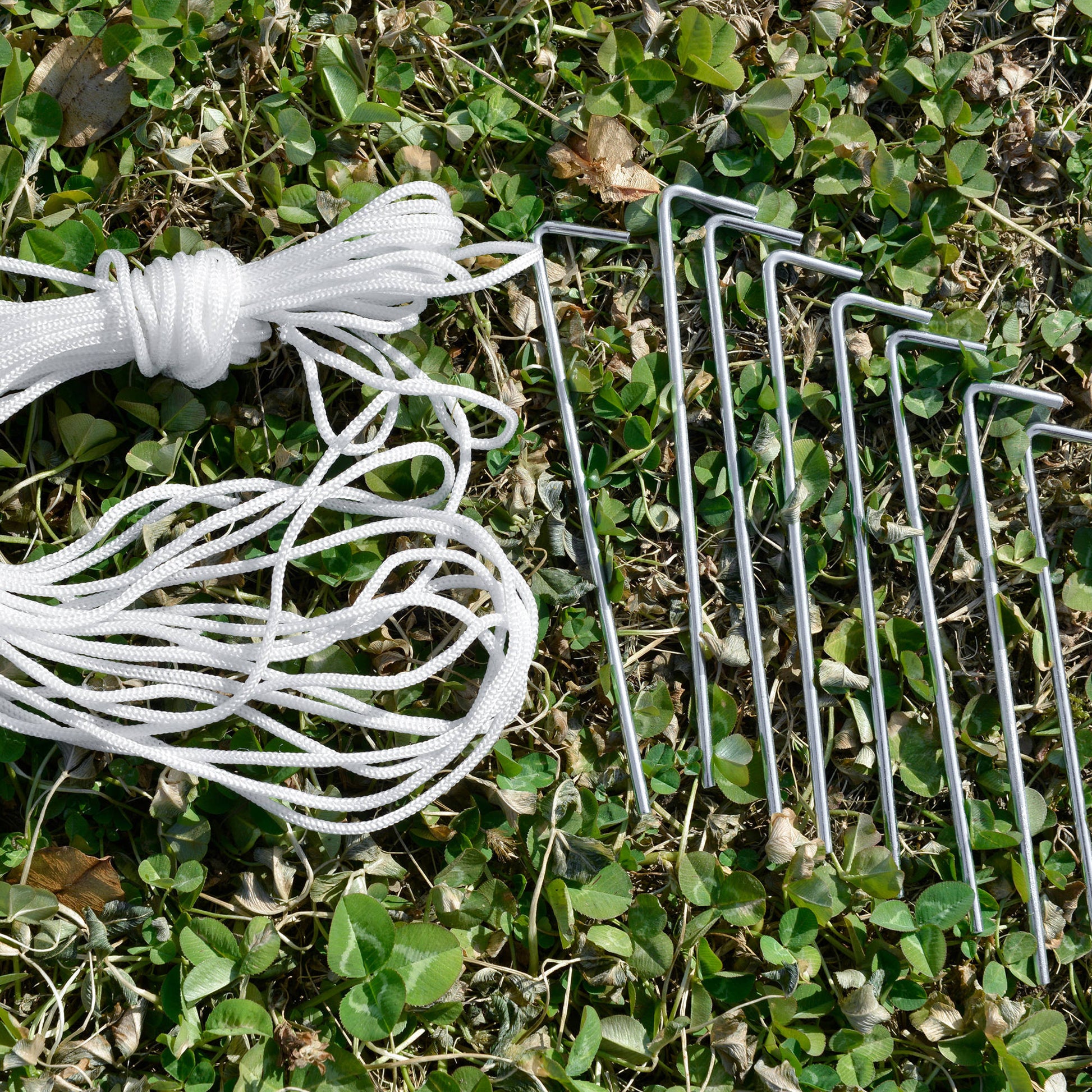 - Accessories included: 4x guy ropes and 8x ground nails,
