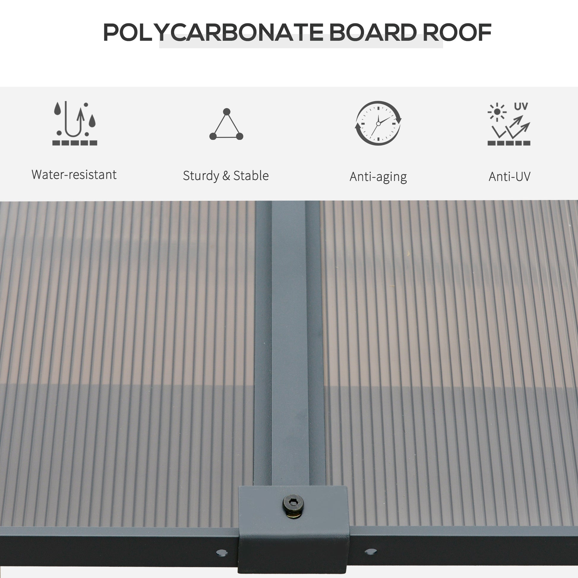 - Tough polycarbonate roof protects against UV