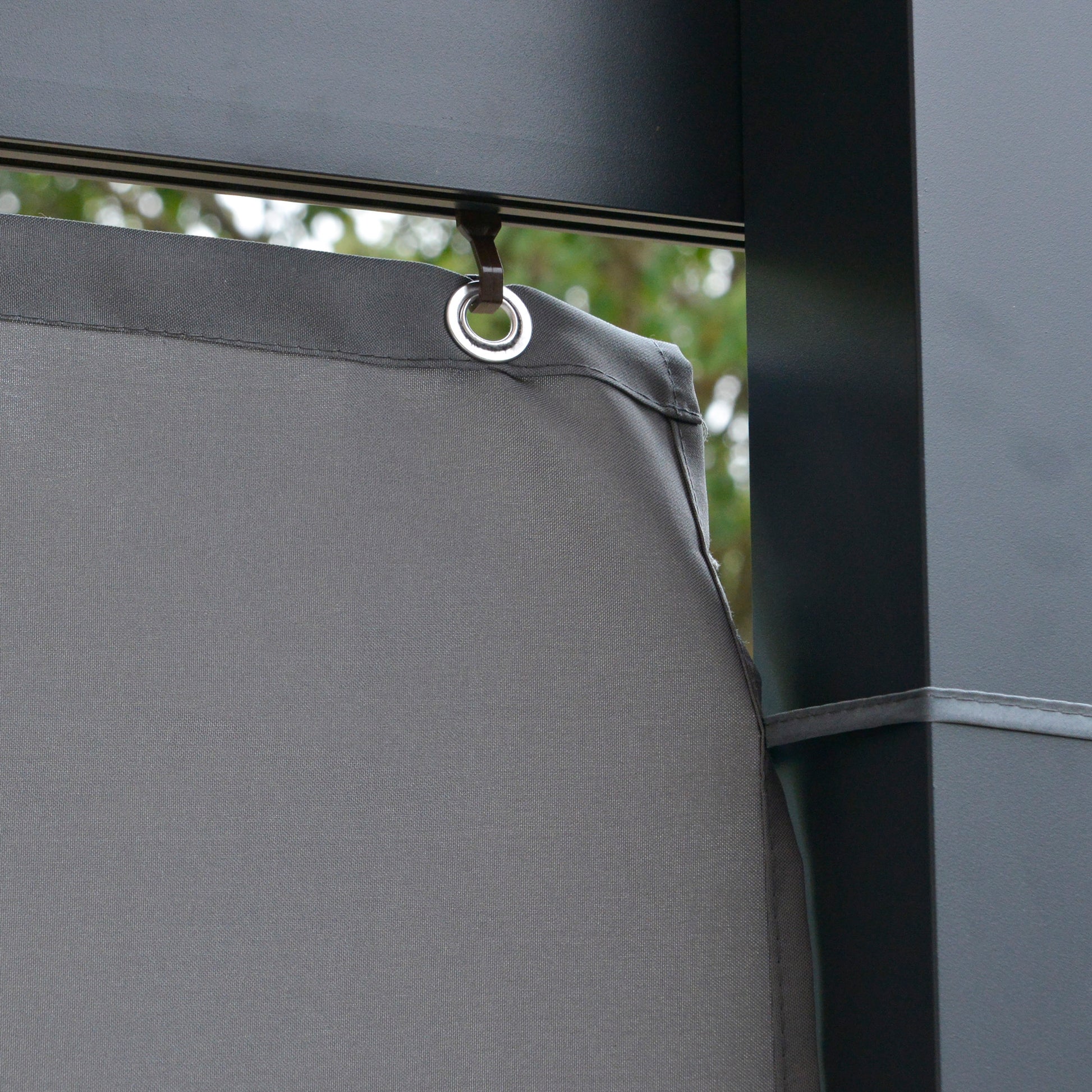 Add style and flair to any outdoor space with this Outsunny lean to pergola. The large size provides plenty of room underneath for a full dining/seating set up - meaning there's room for the whole family. The aluminium frame is tough so it stands in place, with a powder coating for extra strength and protection. It's fitted with adjustable curtains on each corner, giving you control of leaving them open or closed to create specific vibe for your gatherings.