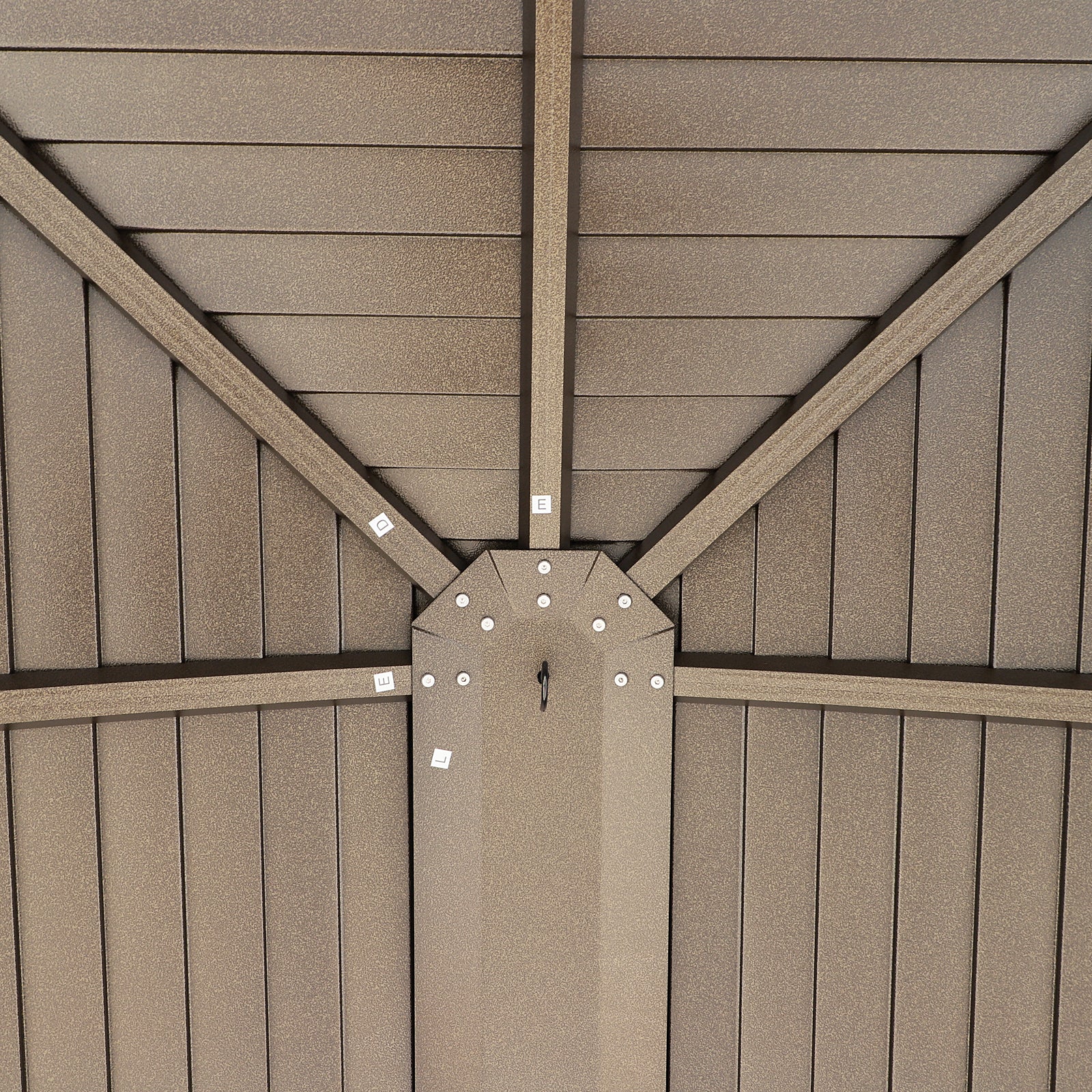 Outsunny 4 x 3(m) Patio Aluminium Gazebo Hardtop Metal Roof Canopy Party Tent Garden Outdoor Shelter with Mesh Curtains & Side Walls, Brown