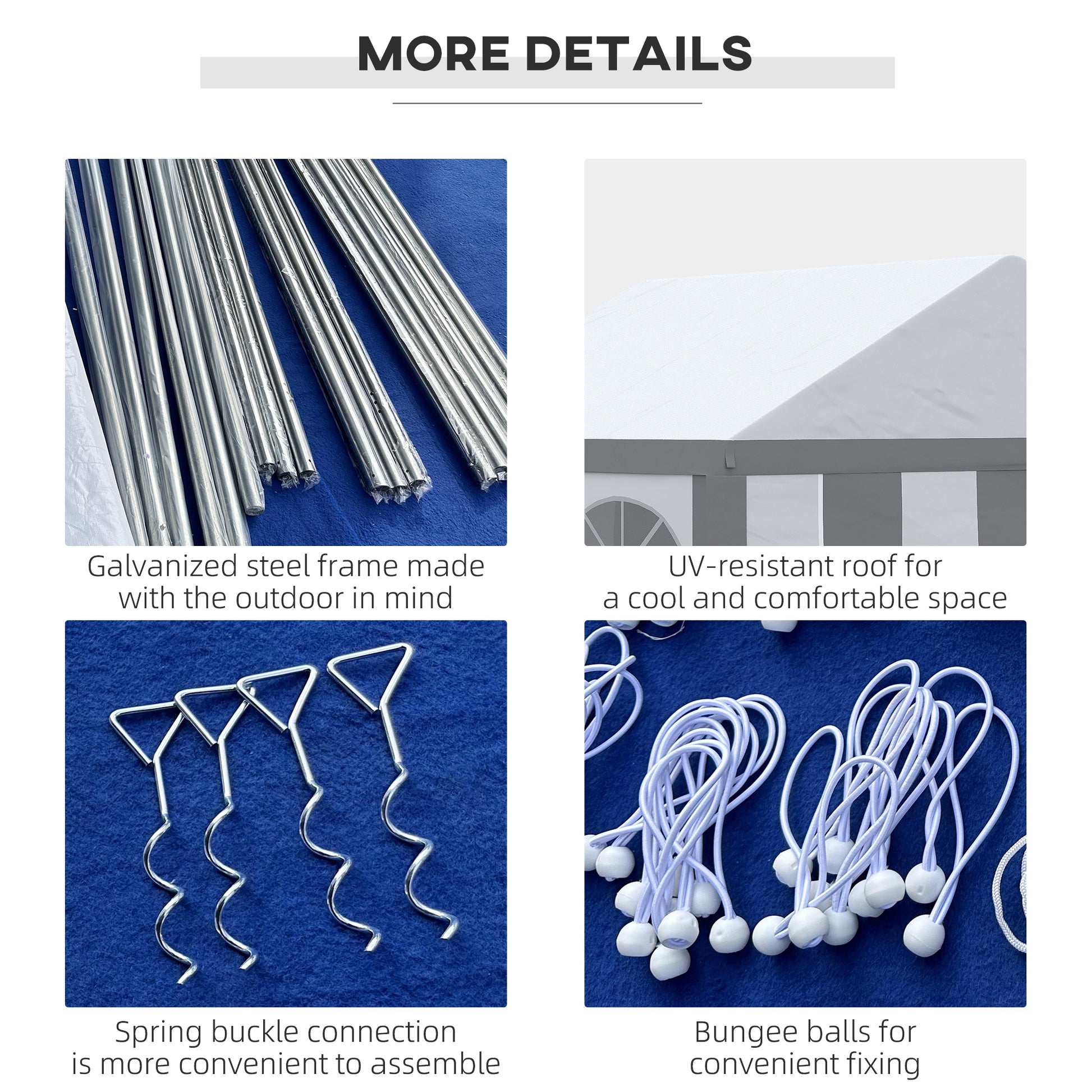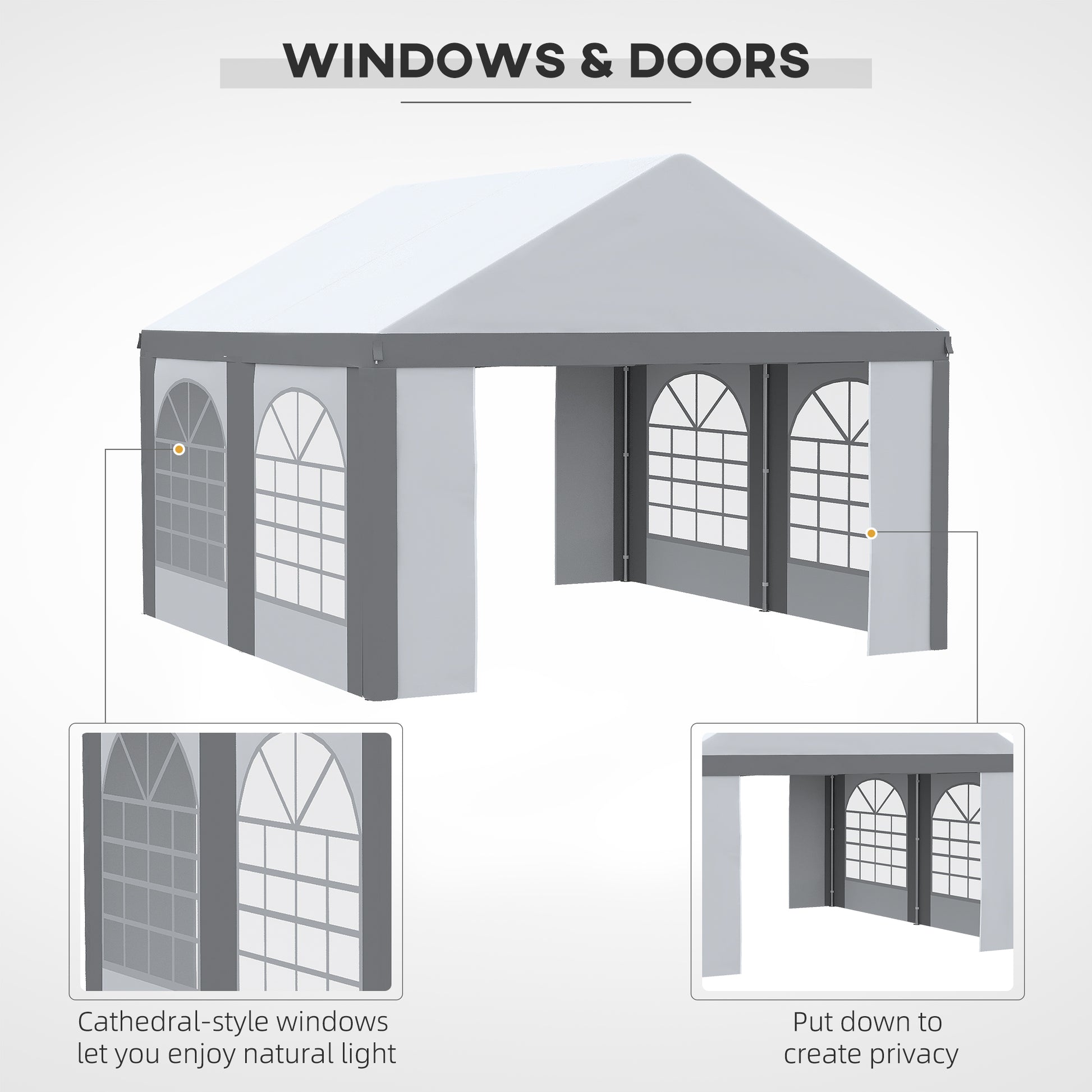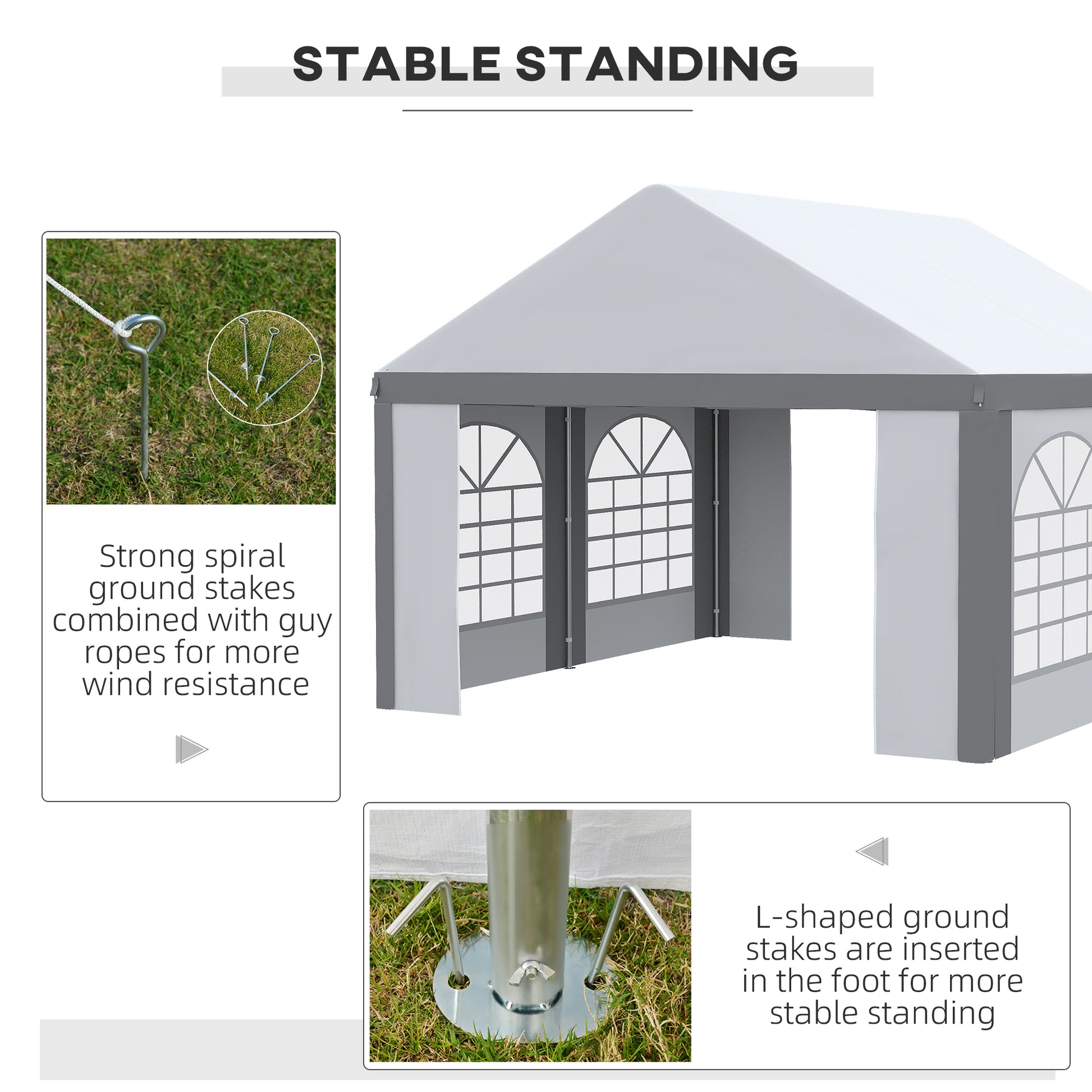 Outsunny 4 x 4m Galvanised Party Tent, Marquee Gazebo with Sides, Four Windows and Double Doors, for Parties, Wedding and Events