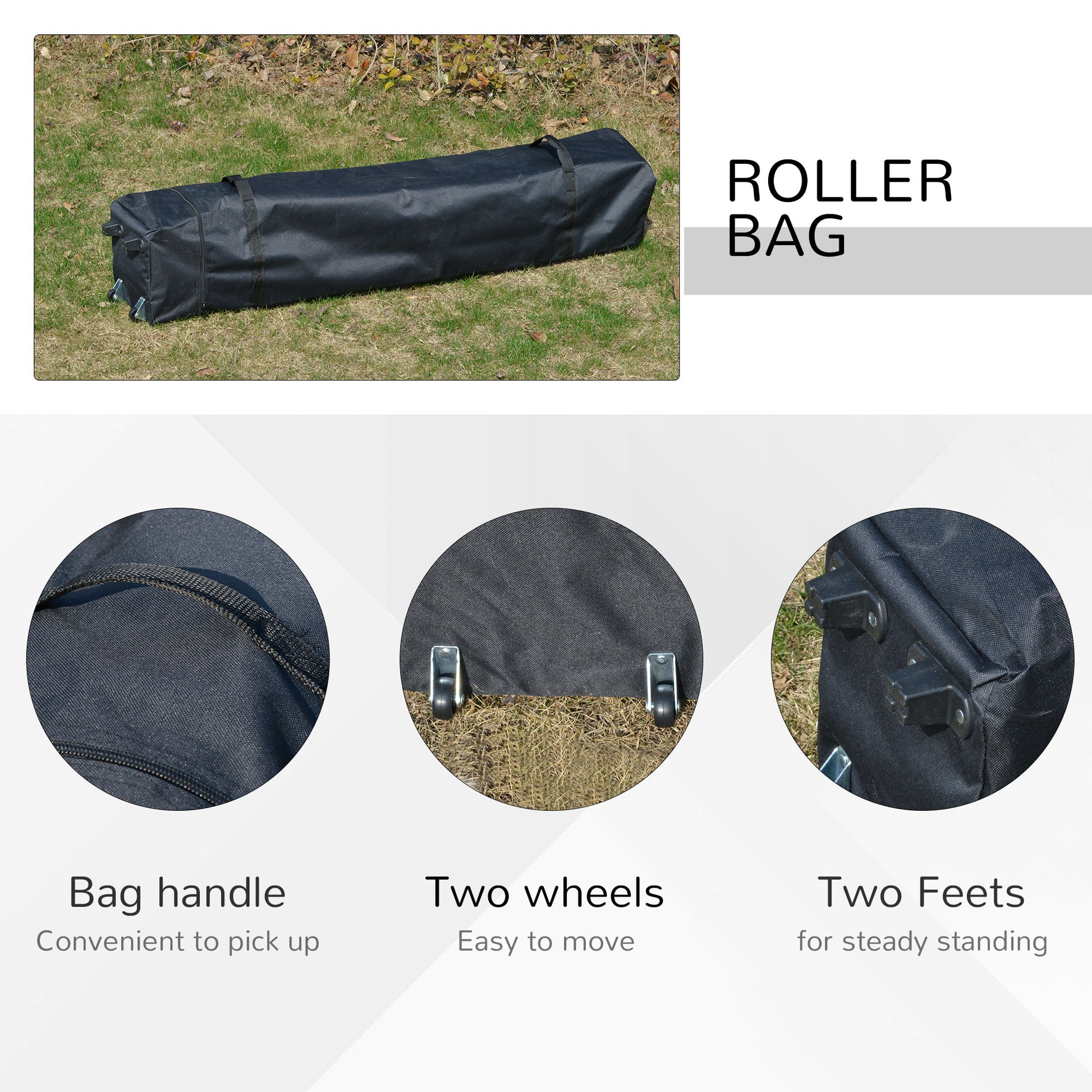 This Outsunny pop up gazebo will create shelter quickly and easily. This adjustable gazebo is great for outdoor parties, gatherings, camping trips, and more. The party tent's frame, made from reliable steel. There's a small vent on the top for air to escape easily. Comes with guy ropes and ground stakes to set this gazebo into place comfortably, it can all be folded and stored in the included roller bag. A simple shelter can be created anywhere thanks to this piece.