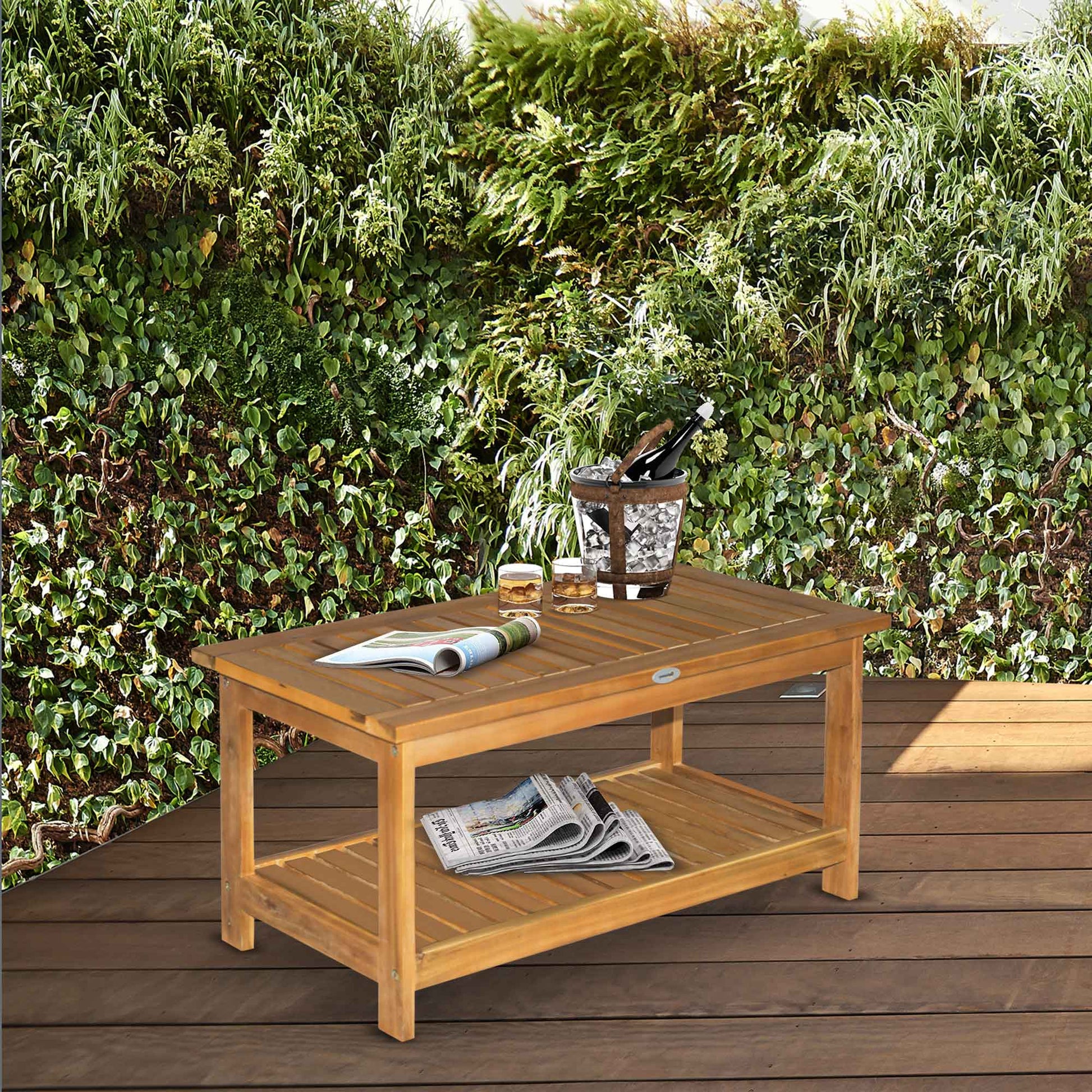 Outsunny 45 x 90cm Natural Acacia Wood Two-Tier Garden Table