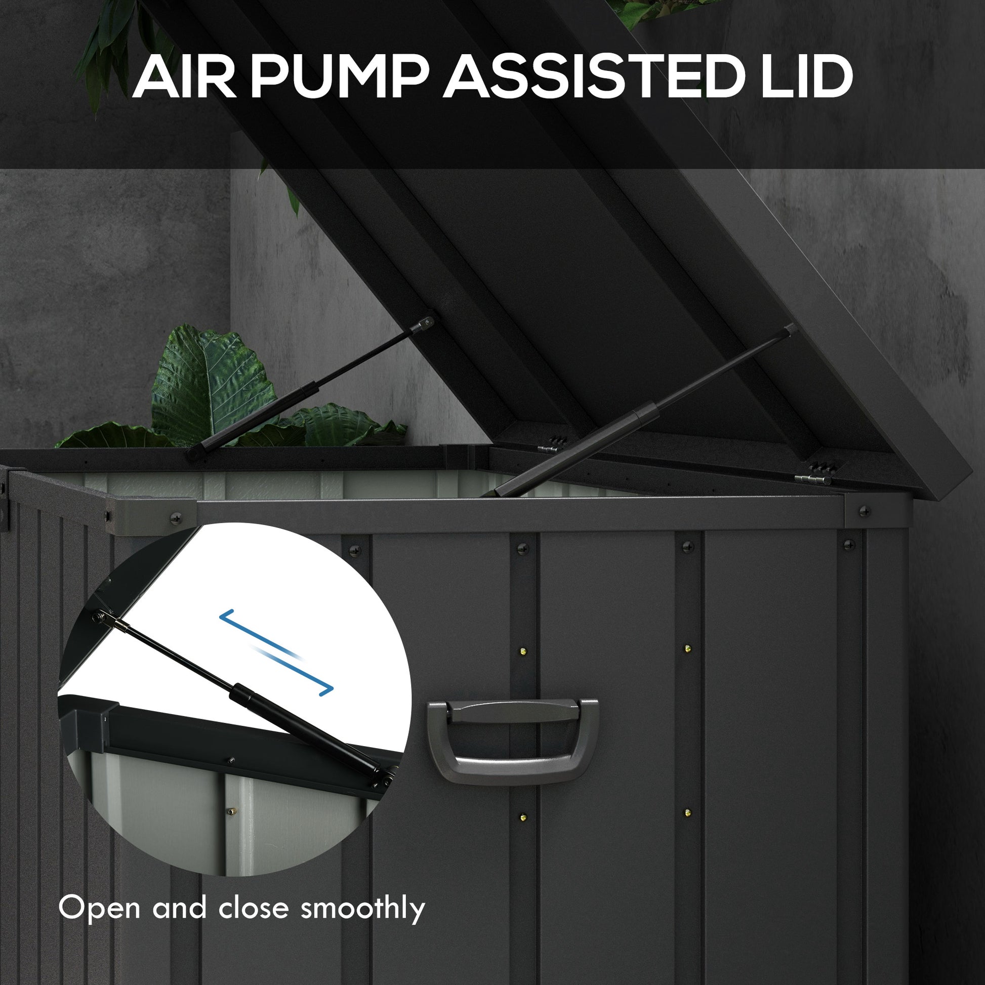 Tough metal outdoor storage comes in the form of this Outsunny lockable garden storage box. The 450L capacity: plenty of holding room for garden accessories, tools and more. Made from thick steel, this waterproof storage box is strong, with a smooth-opening lid to make everything easy. It comes with two handles and two rollers so you can move it around easily, whether empty or full.