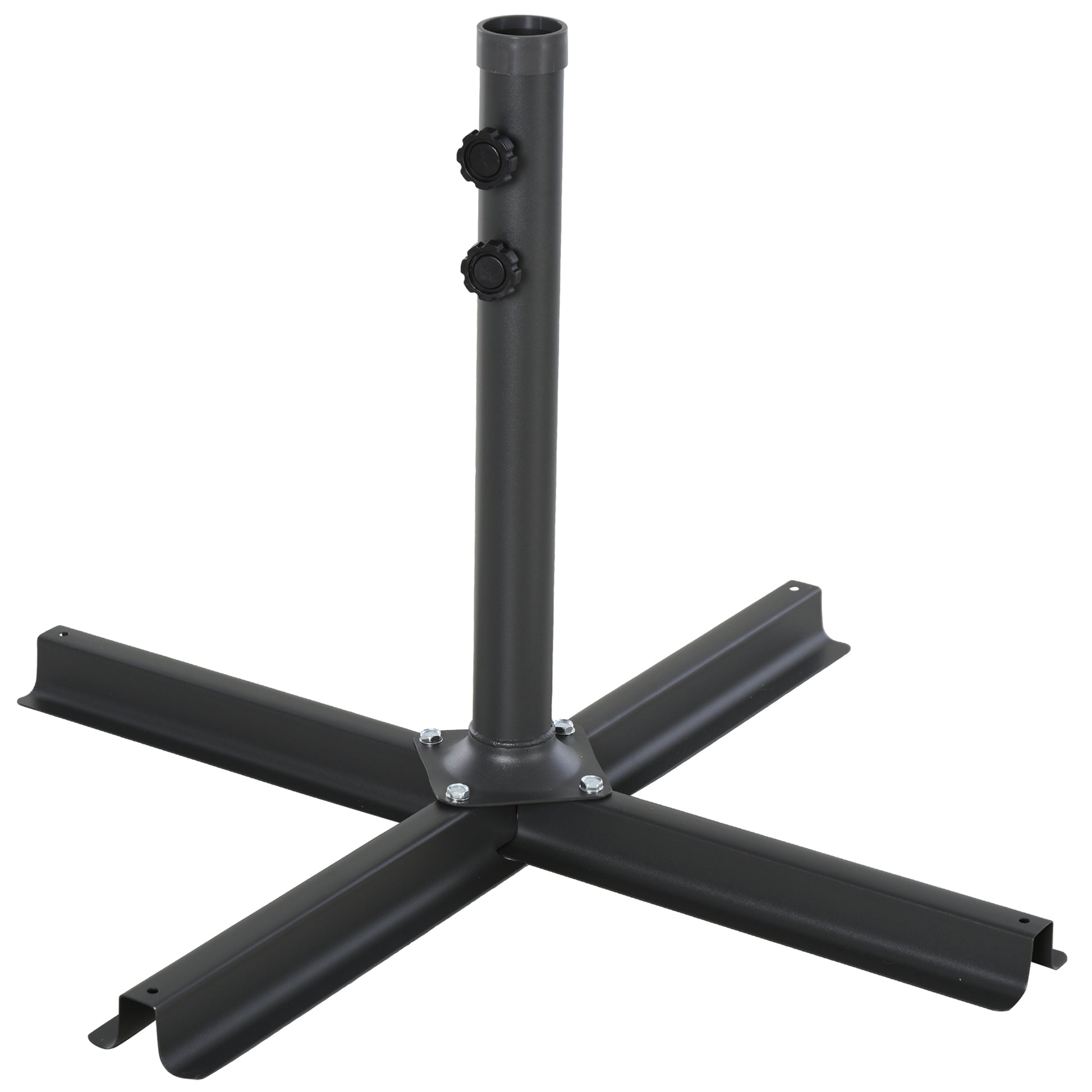 Keep your parasol held firmly in place with this four-piece weighted base from Outsunny. Made from strong HDPE plastic, it is comprised of four pieces which fit together on the supplied steel cross base, fitting parasol poles with a 48mm diameter. Each parts holds 15 litres of water or 18kg of sand, and is filled with the side sprout. Easy to carry when empty. Whether it's for the home or a commercial premises, this is the parasol base for you.