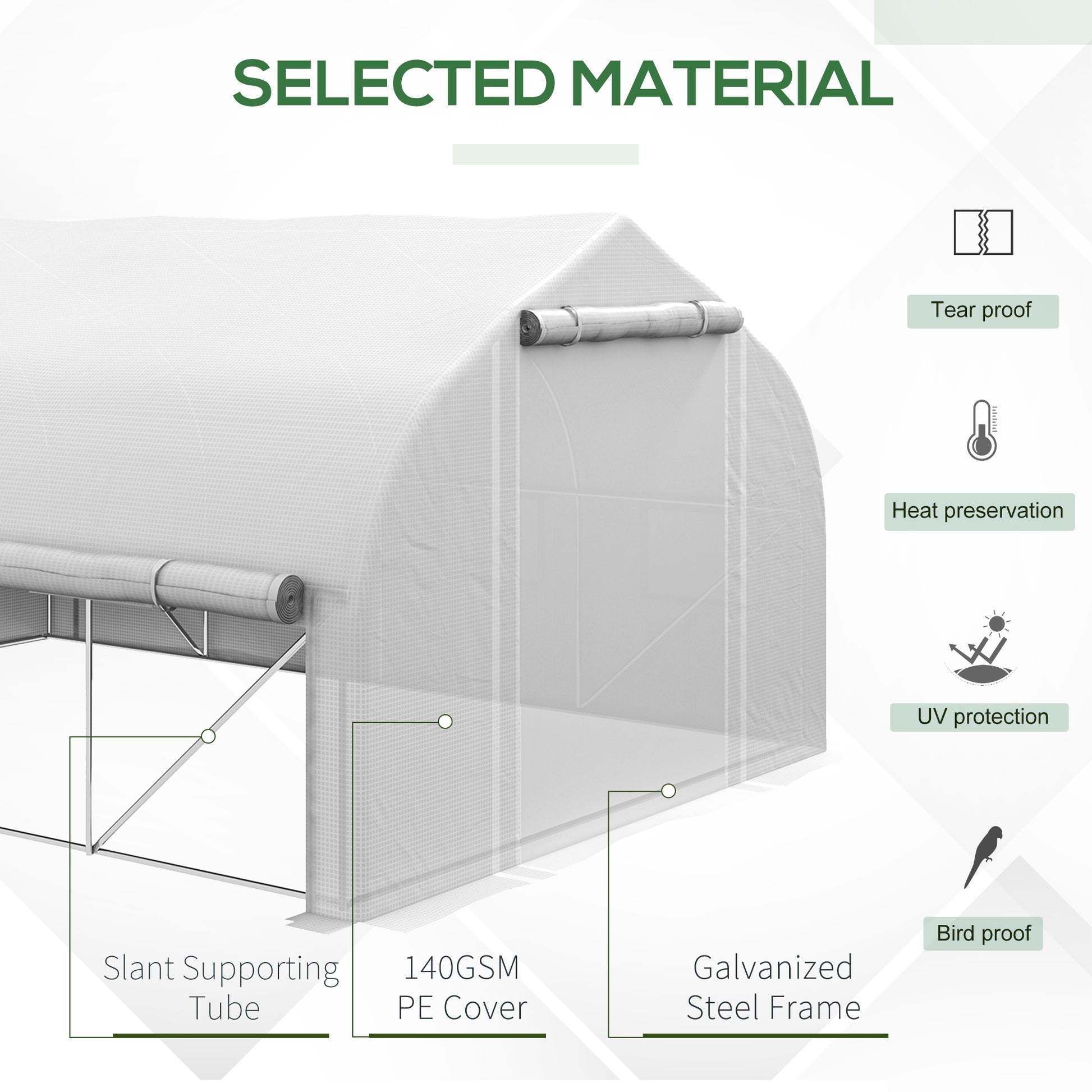 Outsunny 4x3m Walk-in Polytunnel Greenhouse, Zipped Roll Up Sidewalls, Tunnel Warm House Tent w/ PE Cover, Complimentary Plant Labels & Gloves