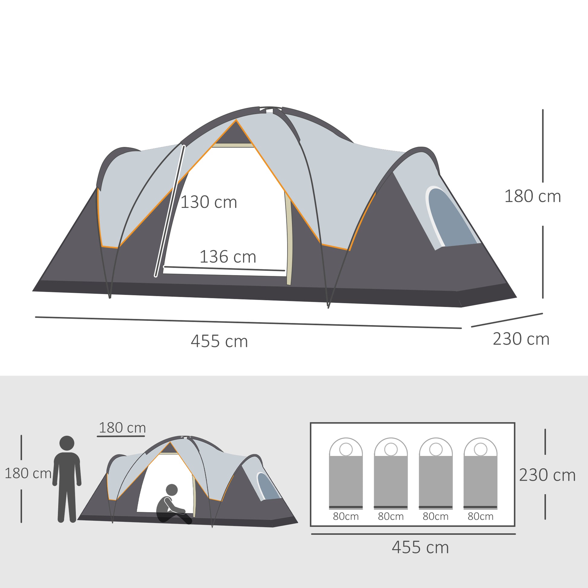 Outsunny 5-6 Man Dome Camping Tent Hiking Shelter UV Protection 3000mm Water Resistant Tunnel Tent - Multicolor